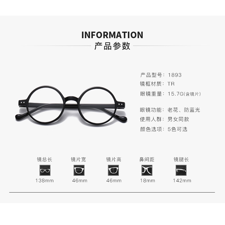 (+0~+400) แว่นตา สายตายาวตามอายุ, แว่นตา สายตายาวตามอายุ สีฟ้าทรงกลมใหม่, แว่นตา สายตายาวตามอายุ แบบวงกลมสําหรับวัยกลางคนและผู้สูง