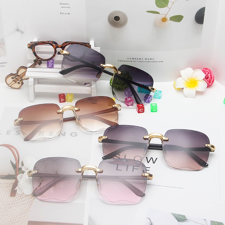((พร้อมส่ง) แว่นตากันแดดแฟชั่น ไร้กรอบ ทรงสี่เหลี่ยม เลนส์หลากสี สไตล์เกาหลี เรียบง่าย สําหรับผู้หญิง
