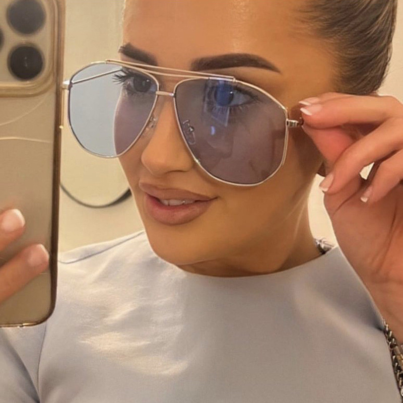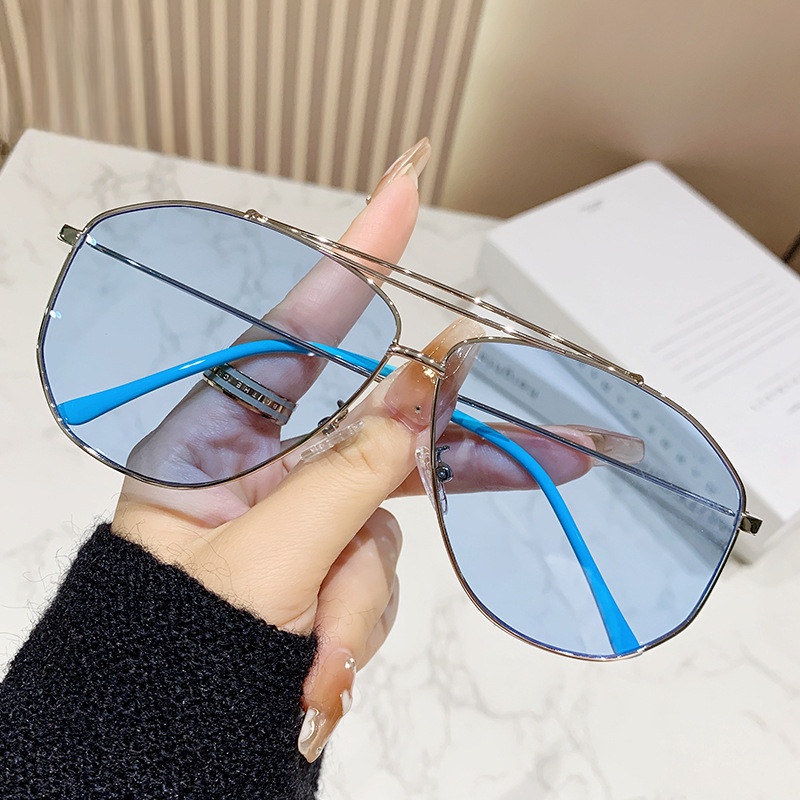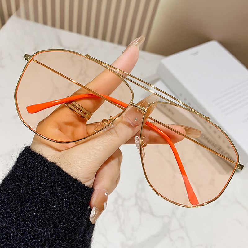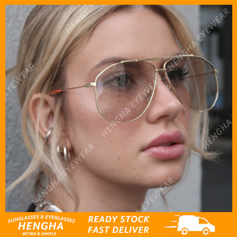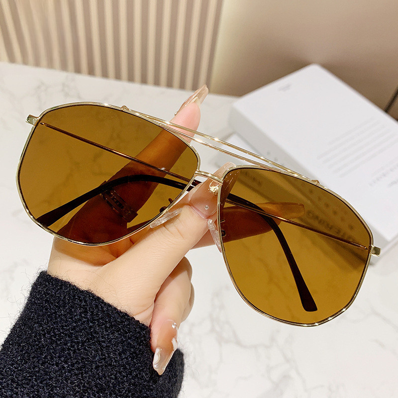 (HENGHA) แว่นกันแดดนักบินทรงคางคกรูปหลายเหลี่ยมแว่นกันแดดอเนกประสงค์โลหะใหม่สําหรับผู้หญิง