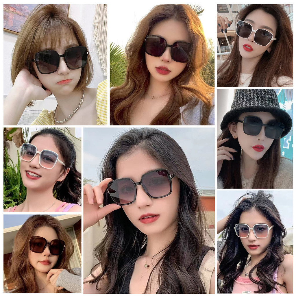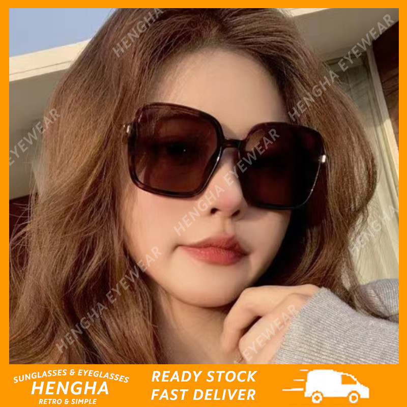 (HENGHA🌹 Leopard/tea Square Frame Rice Nail แว ่ นกันแดดสําหรับผู ้ หญิงแฟชั ่ นเกาหลีกรอบขนาดใหญ ่ แว ่ นกันแดดม ่ านบังแดด