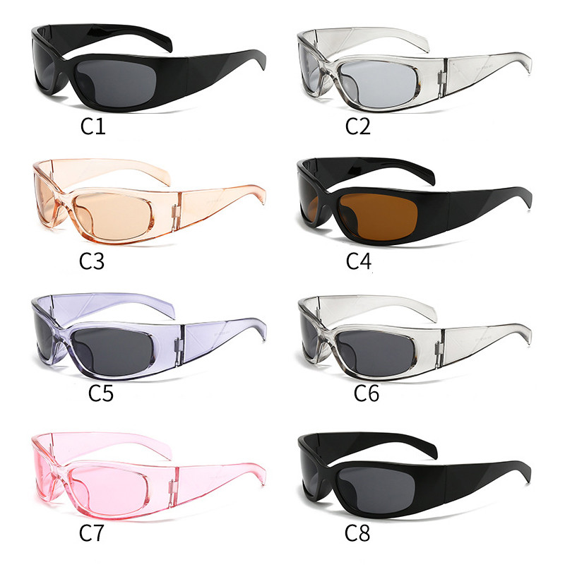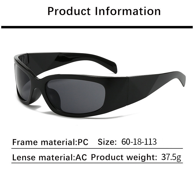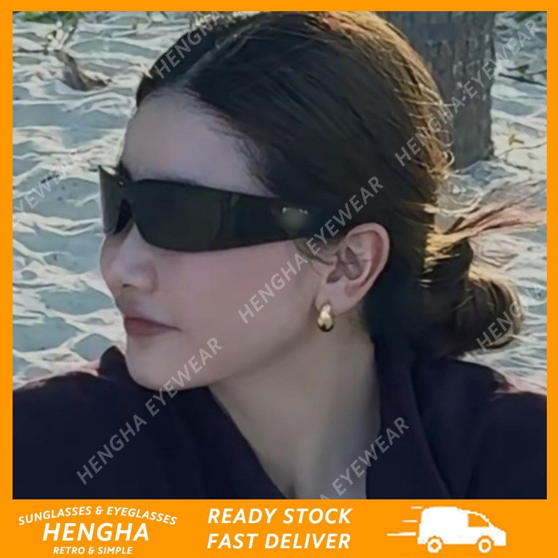 (HENGHA) แว่นกันแดด Cyberpunk Avant-garde แฟชั่นแว่นกันแดดกีฬากรอบชิ้นเดียวสีดํา