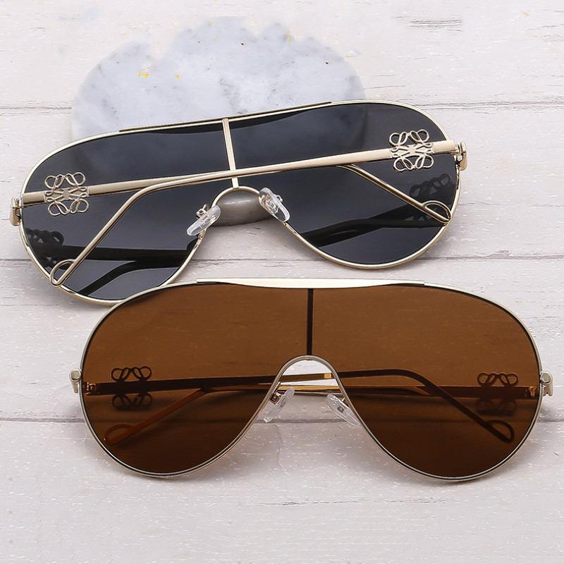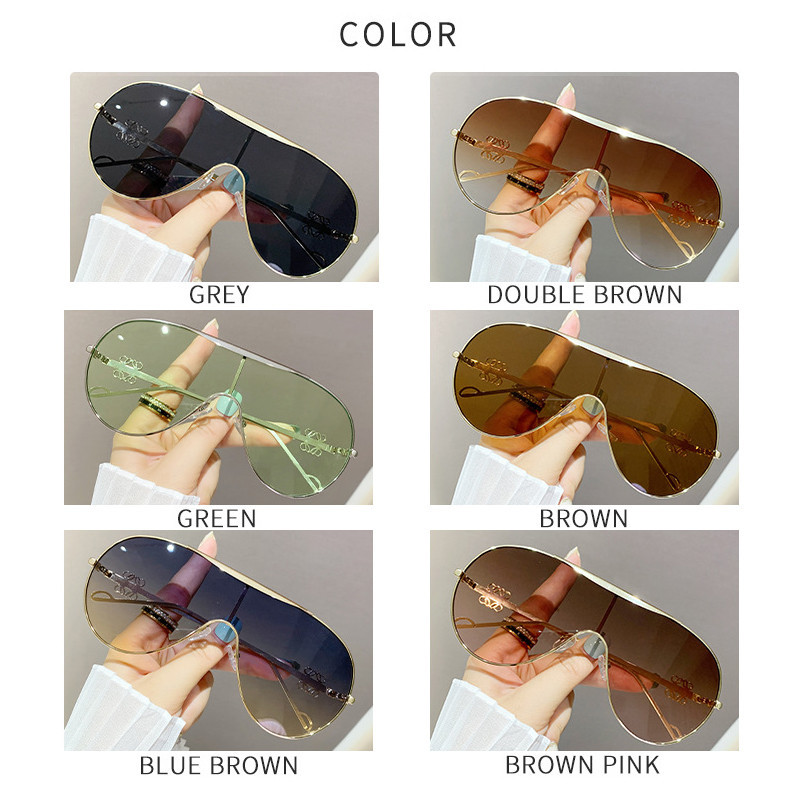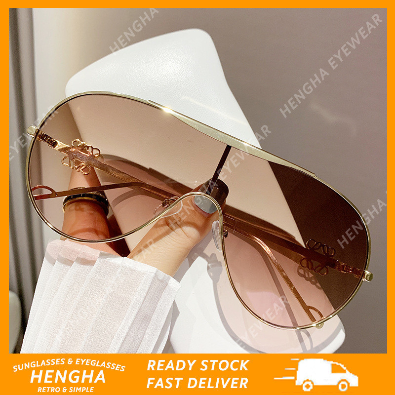 (HENGHA) Aviator ขนาดใหญ่กรอบแว่นตากันแดดสีสันสดใสสําหรับผู้หญิงแฟชั่นตะวันตกกรอบโลหะแว่นกันแดดบังแดด