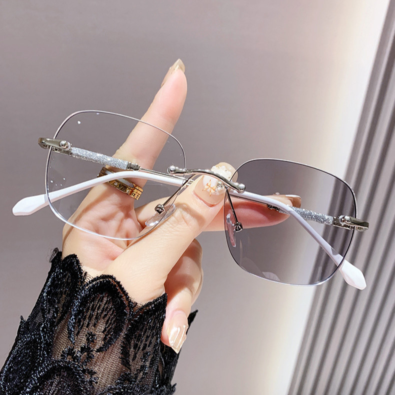(+0~+400) แว่นสายตายาว โฟโตโครมิก แว่นตาแฟชั่นไร้กรอบสําหรับผู้หญิงแว่นสายตายาวสําหรับผู้หญิงแว่นอ่านหนังสือสําหรับผู้สูงอ