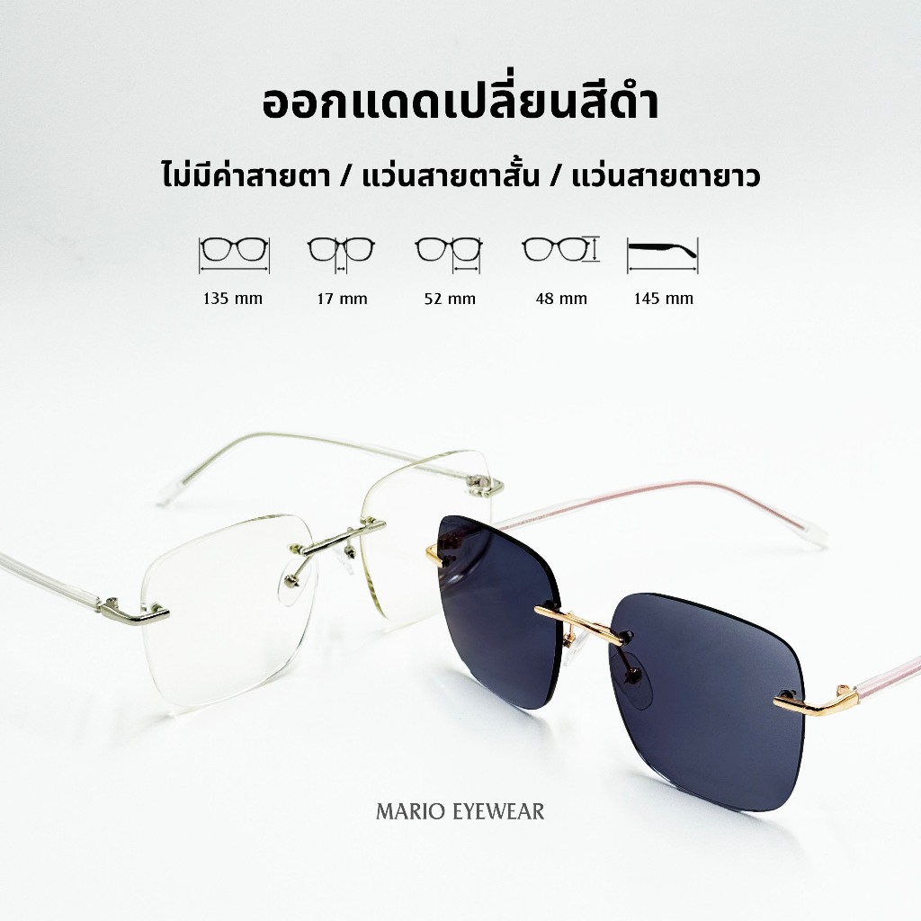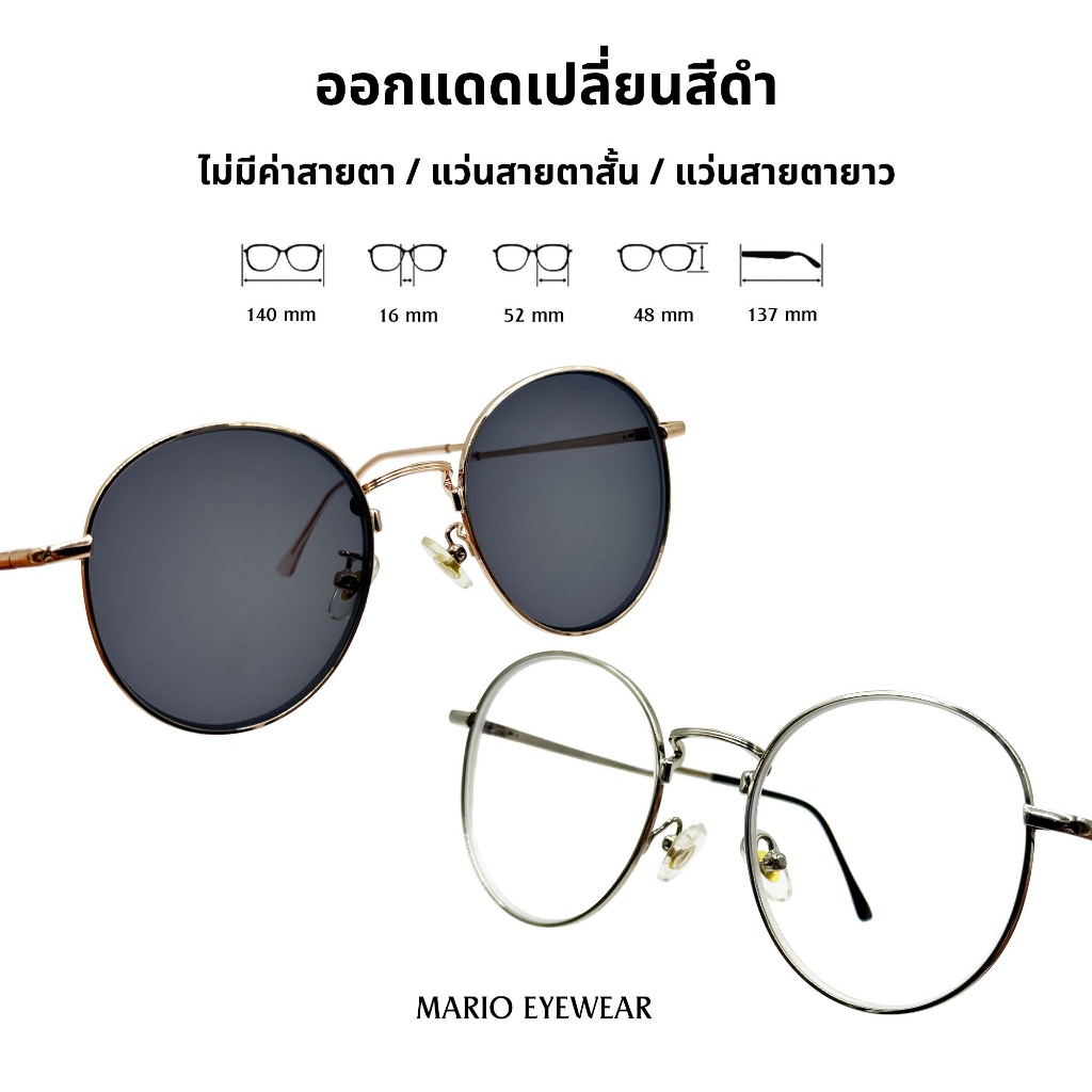 “Mario: แว่นสายตา มัลติโค้ด UV400 เปลี่ยนสีดำเมื่อออกแดด(ค่าสายตาสั้นถึง-800) รุ่น8265”