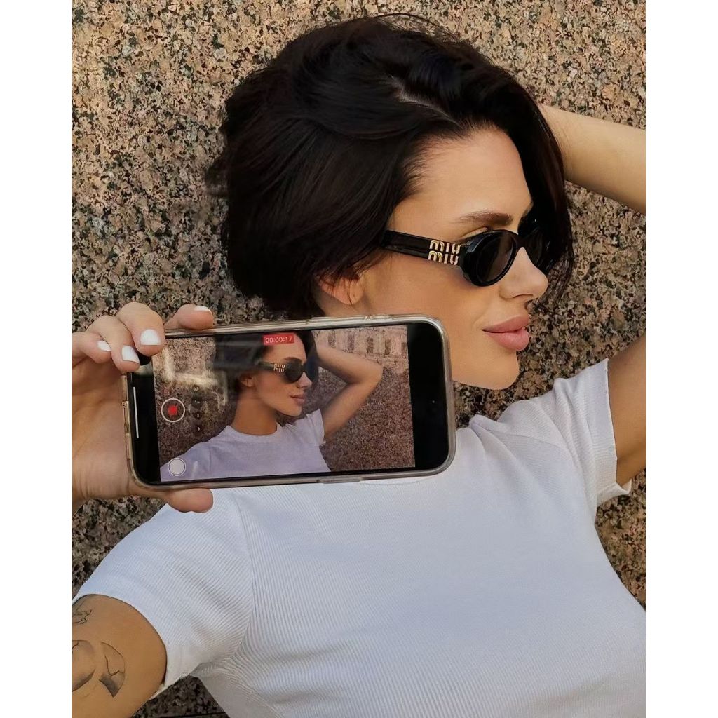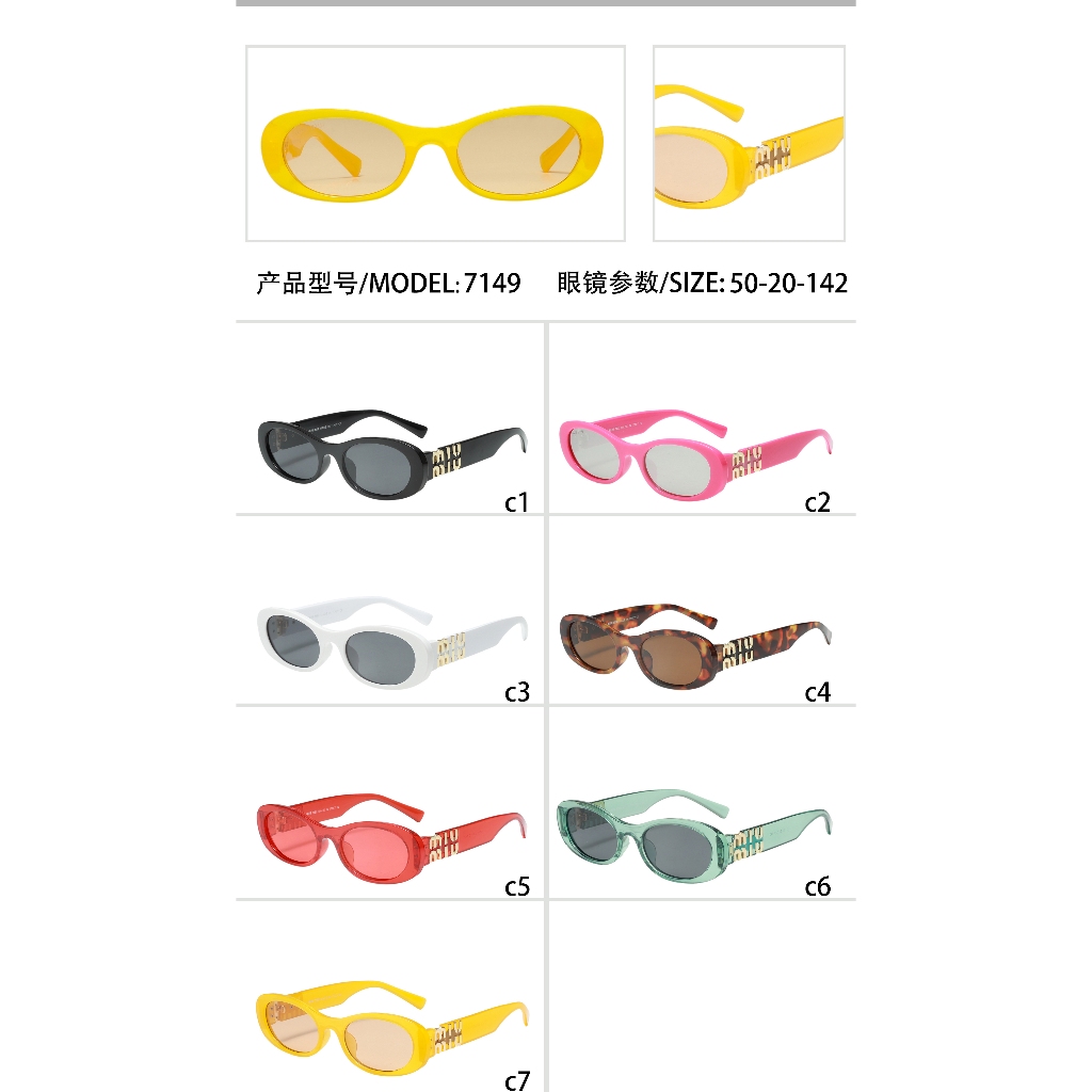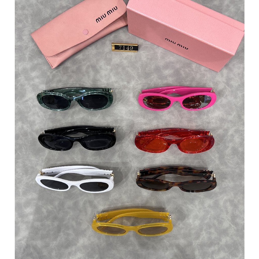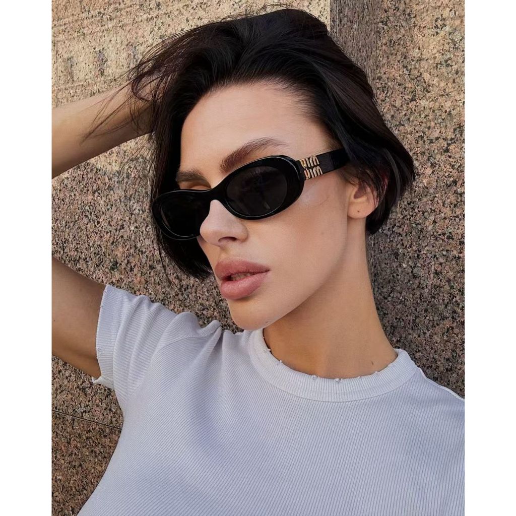 2025 แว่นตากันแดดสําหรับเดินทางย้อนยุคคุณภาพสูงใหม่สําหรับผู้หญิงแบรนด์มิวกรอบเล็กทรงรีกันแดดป้องกันแว่นตาขับรถมีสไตล์7149