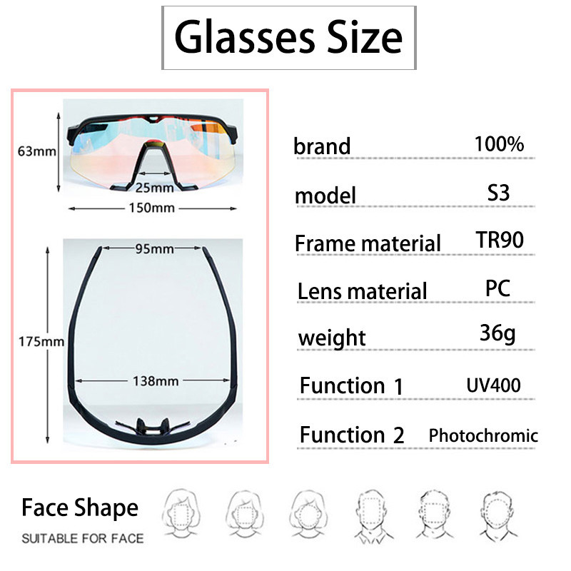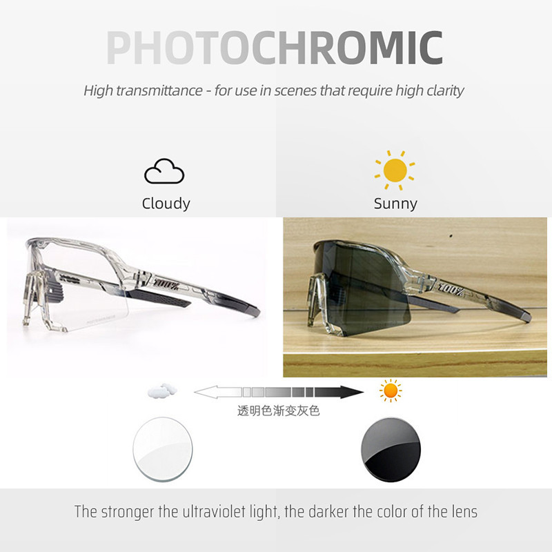 100% S3 Photochromic แว่นตาขี่จักรยาน UV400 ผู้ชายผู้หญิงกีฬาแว่นตากันแดด MTB จักรยานแว่นตาวิ่ง Shades สําหรับตกปลาขับรถขี่ Racing