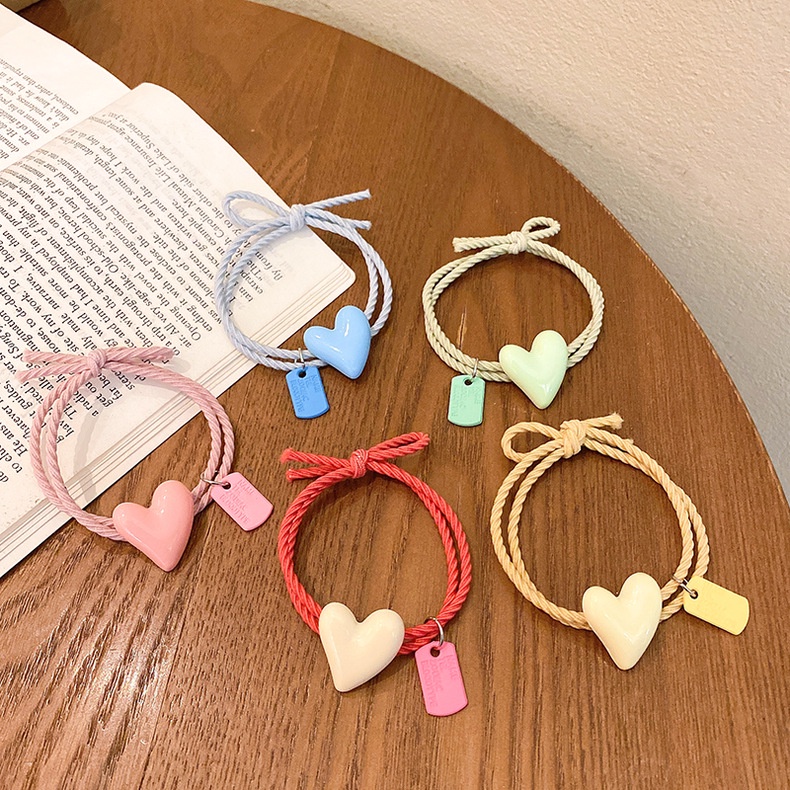 (A-271) ยางรัดผมจี้หัวใจสีพาสเทล สไตล์แฟชั่นเกาหลี ยางมัดผม ยางรัดผม สวยหวาน น่ารัก (เลือกสีได้)