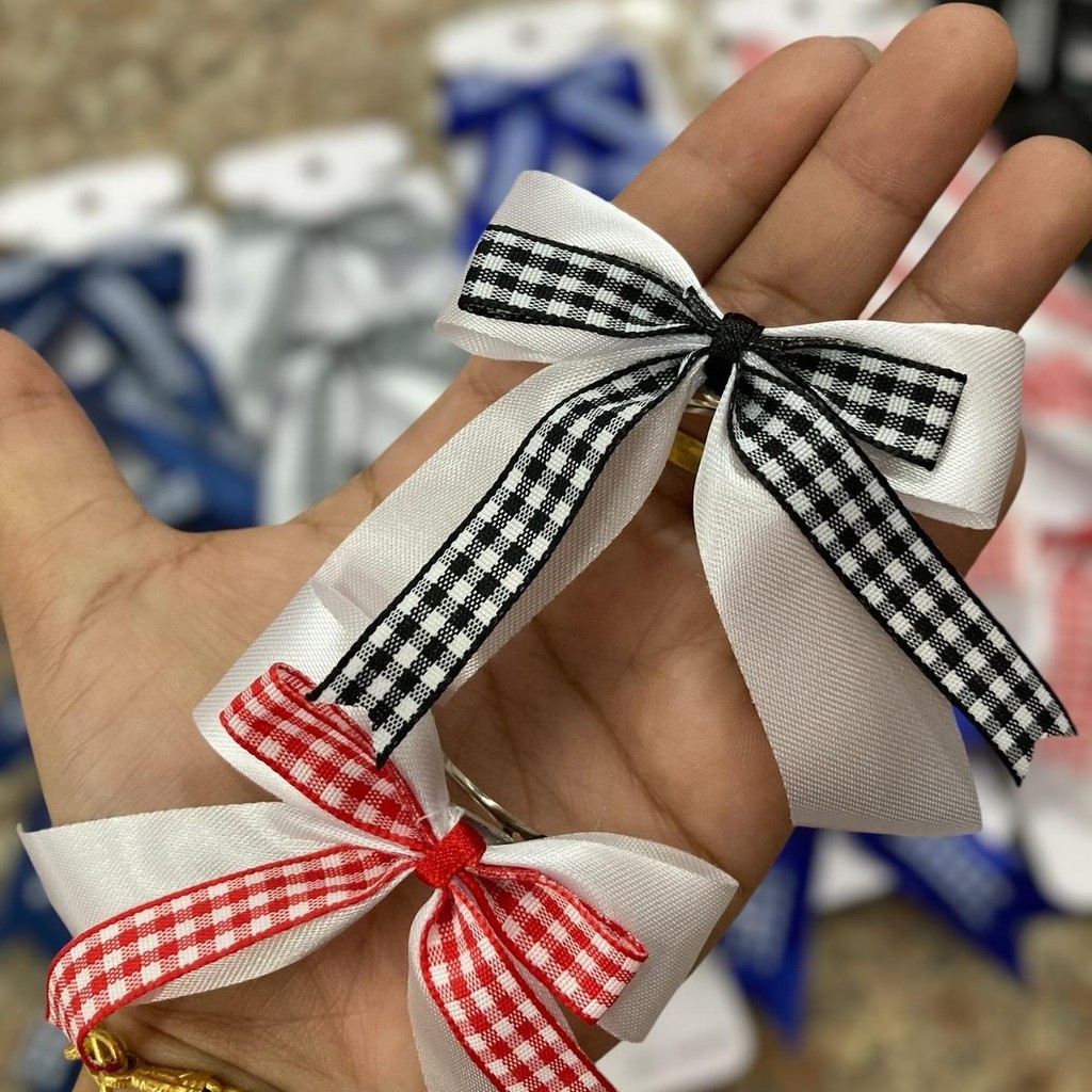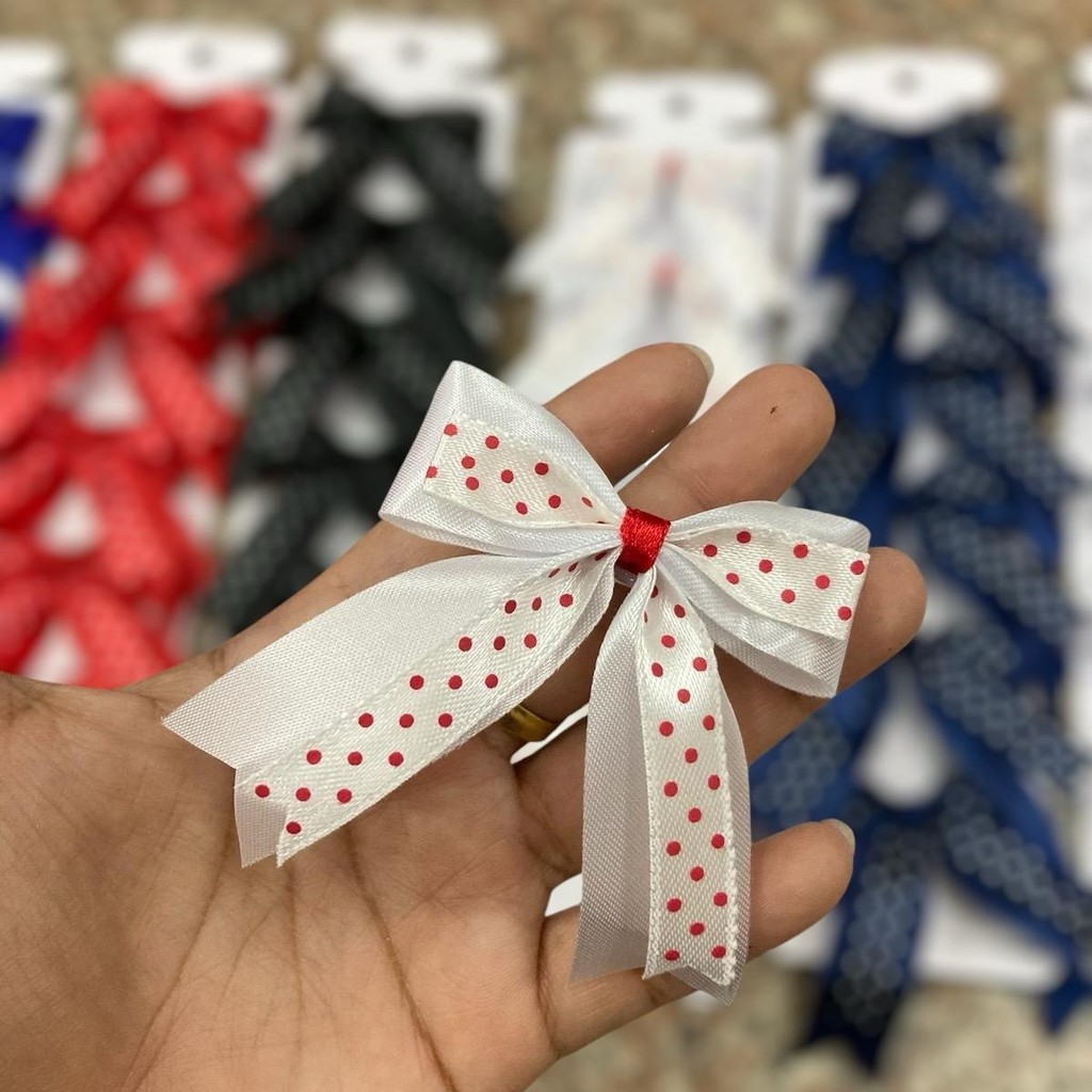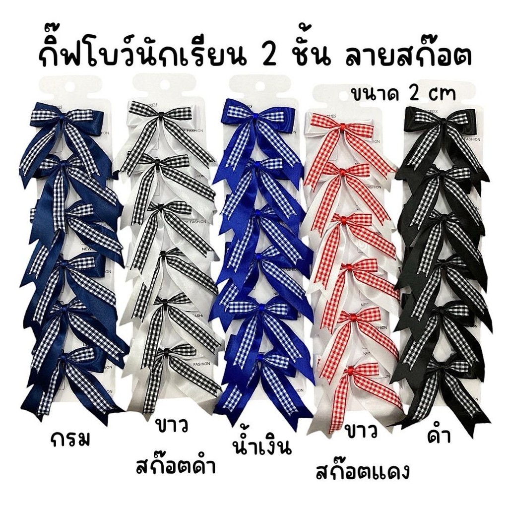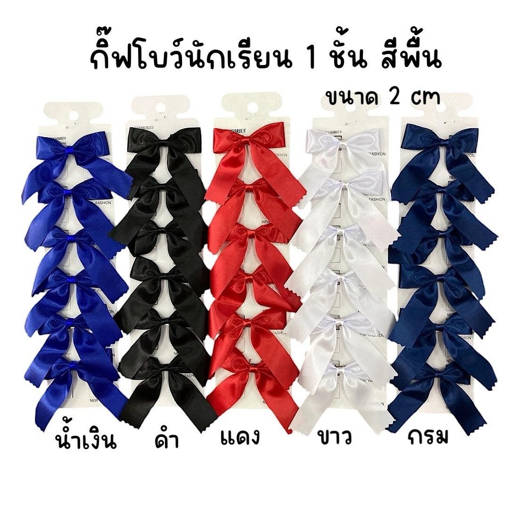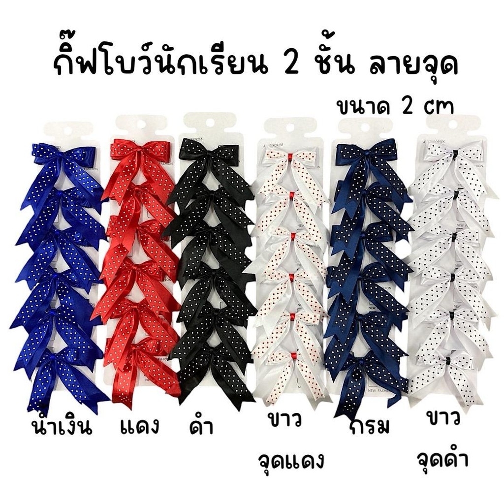 (1แผง6อัน) กิ๊ฟโบว์นักเรียน แผงกระดาษ 2cm สีพื้น1ชั้น ,สีพื้น2ชั้น,ลายจุด,ลายสก๊อต