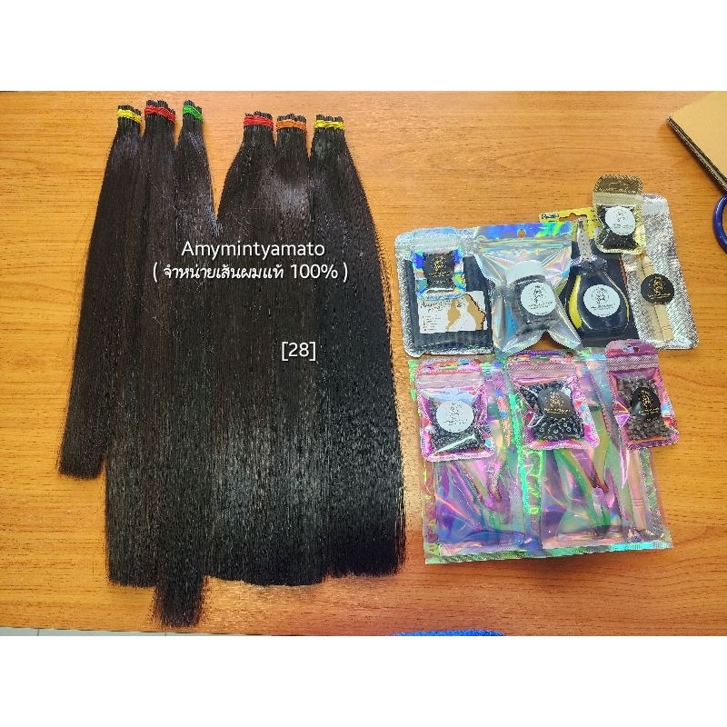 (28) ผมแท้ตัดสด ไซร้28/100ช่อ/กิ้บใหญ่/ราคา1,500บาท สายวัด50ซ.ม. ผมยืดฟรีทุกมัด