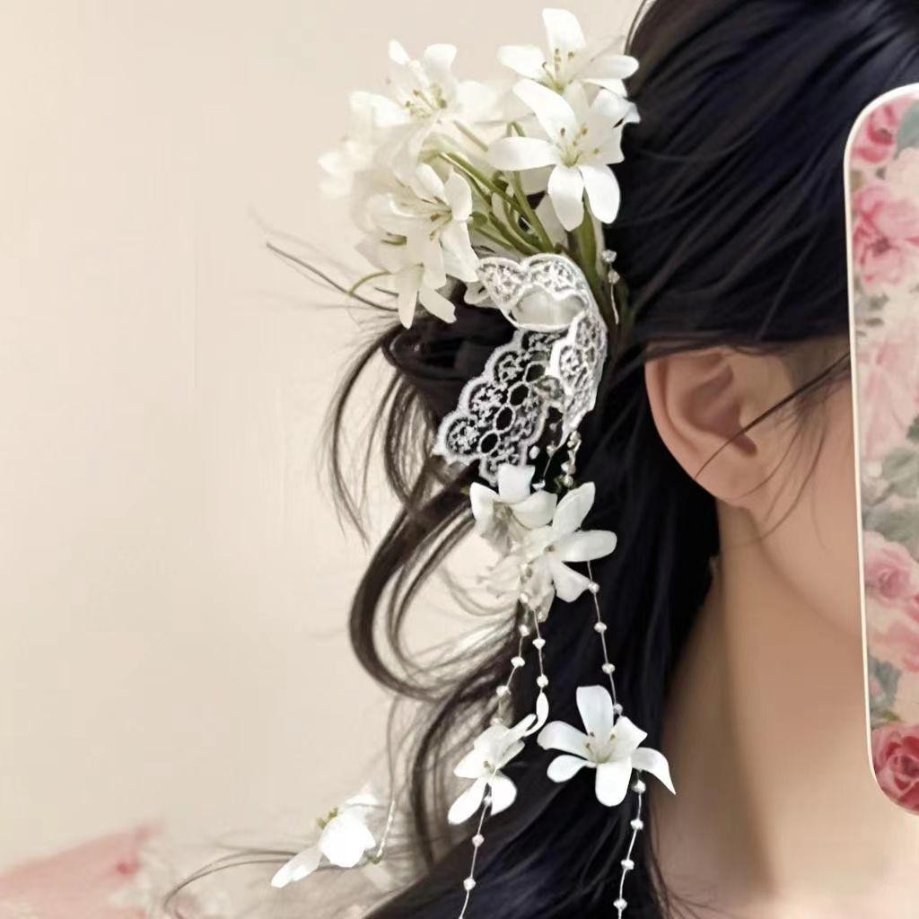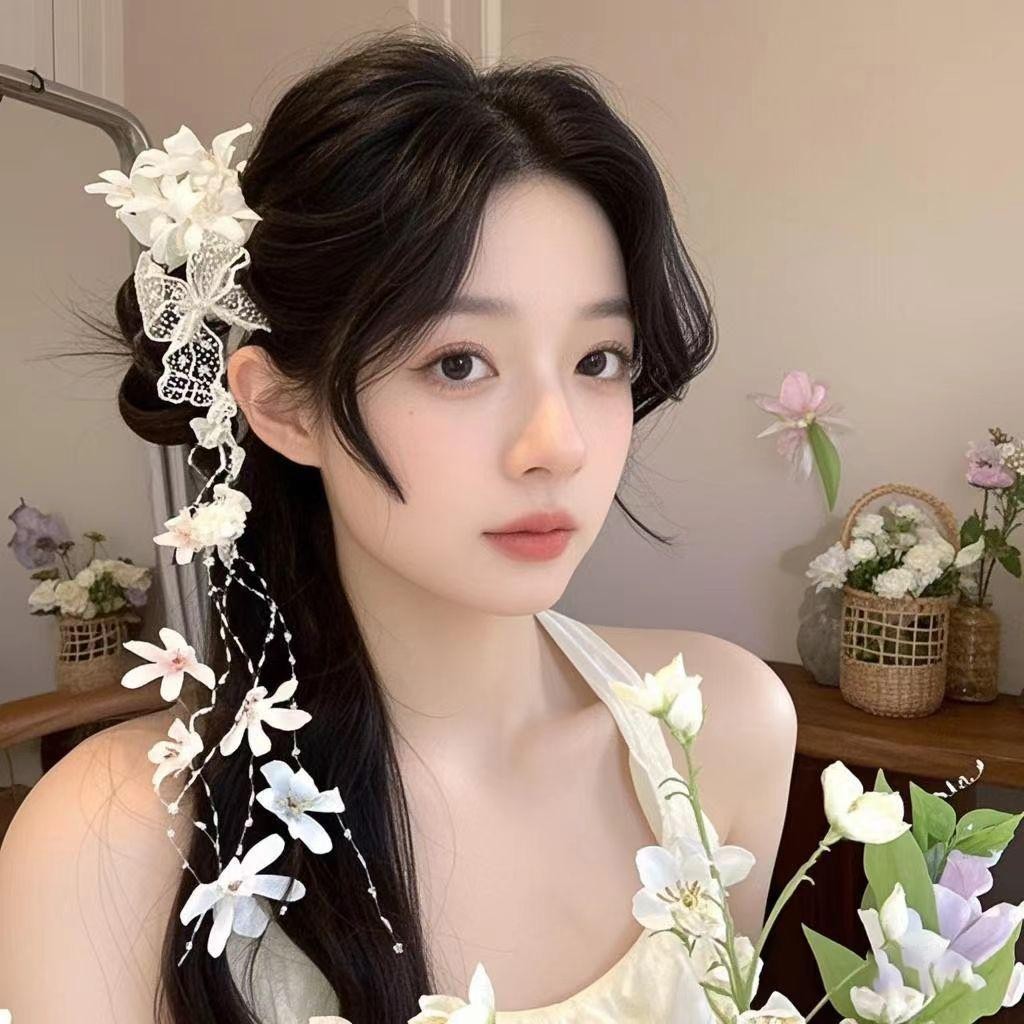 Fashion girl💮💮กิ๊บติดผมพู่ดอกไม้ ไฮเอนด์ กิ๊บติดผมรูปปากเป็ด แฟชั่นสําหรับผู้หญิง สไตล์จีนใหม่ สไตล์โบราณ