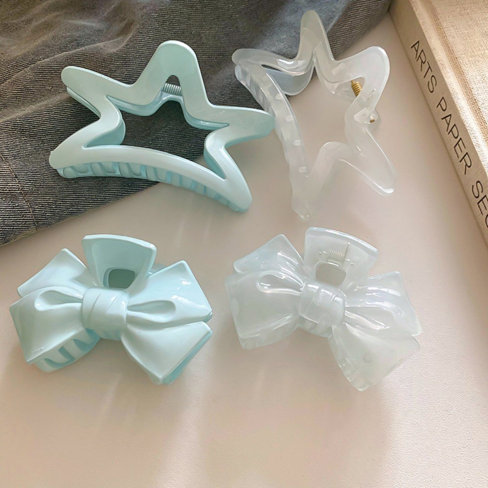 French Sweetheart Cream Blue Bow with Five Pointed Star Pan Hair Clip Headwear สําหรับผู ้ หญิง