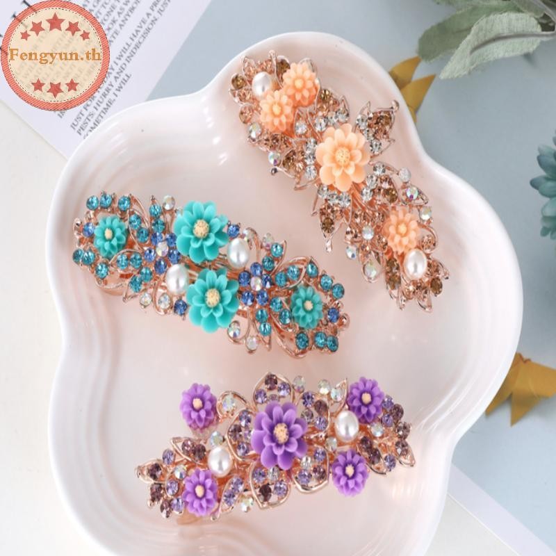 FENGYUN ใหม่ แฟชั่นดอกไม้ Rhinestone กุญแจผมเกาหลี หางม้า Hairpin สำหรับผู้หญิง ฤดูใบไม้ผลิ
