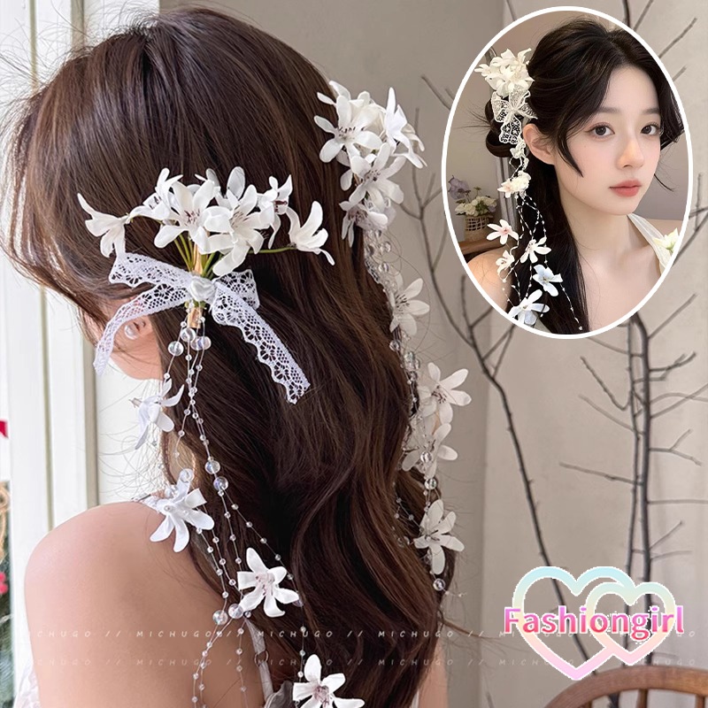 Fuzou Professional Headdress กิ๊บติดผมสําหรับสาว Vintage Bowknot หางม้าคลิป Camellia ดอกไม้ผ้าโรงแรมเกาหลี Bun Snood