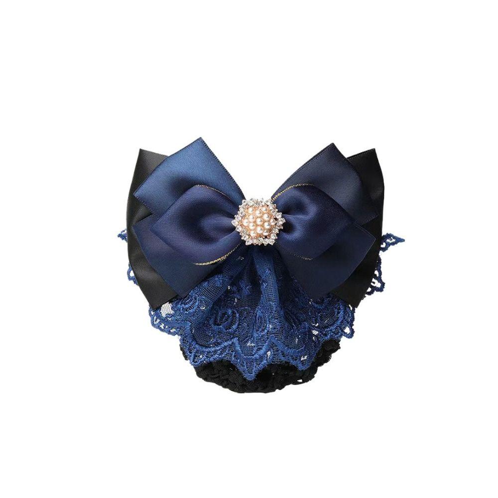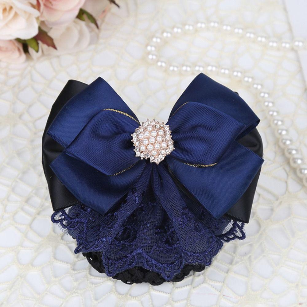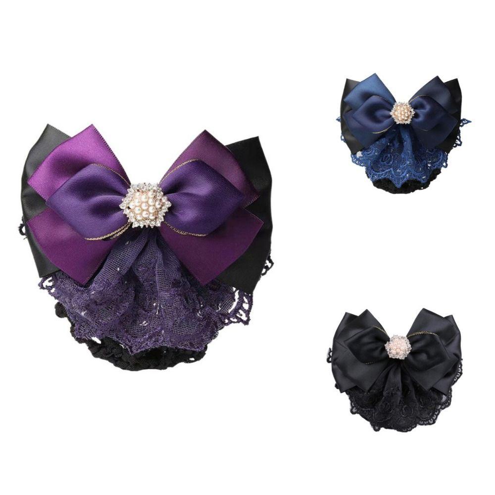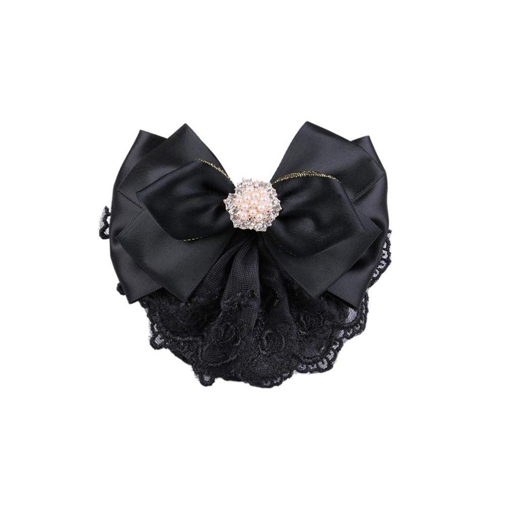 OCEANMAP ริบบิ้นโบว์คลิป พร้อมสร้อยไข่มุก Swarovski และเน็ตครอบหัว สไตล์เครื่องประดับผมเกาหลีหรูหรา
