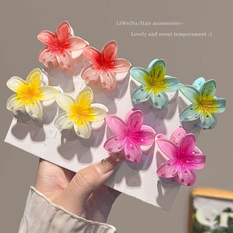 New Gradient Plumeria Flower Hairpin Grips คลิป Barrettes อุปกรณ์เสริม