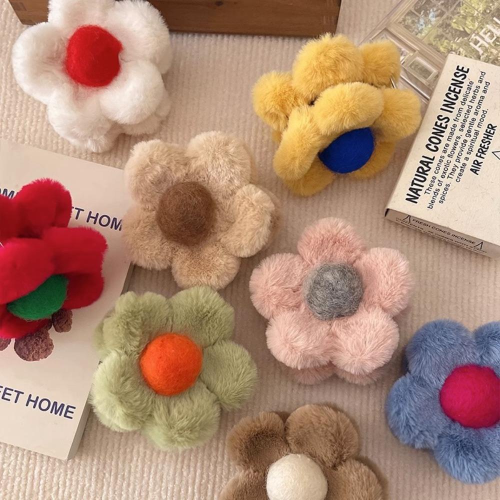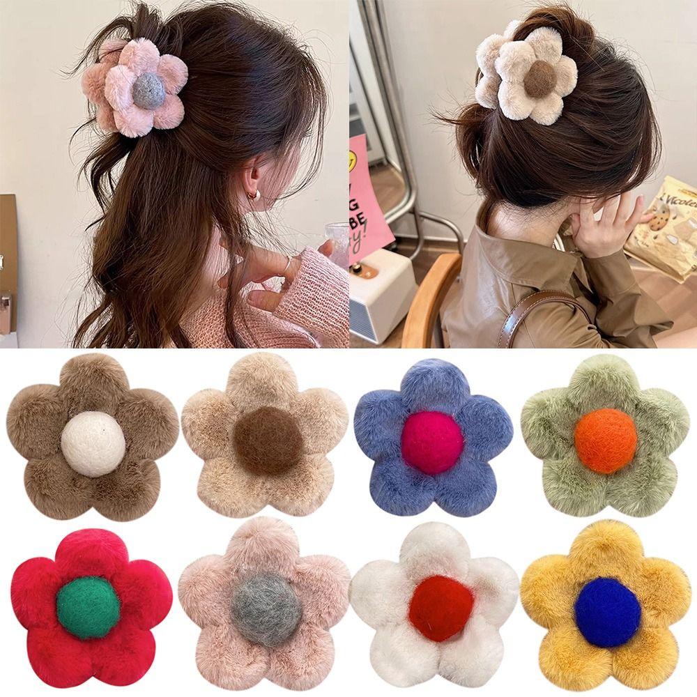Y2k หวานตุ๊กตา Star ปิ่นปักผมน่ารัก Faux Fur กิ๊บติดผมหน้าม้าสีชมพู