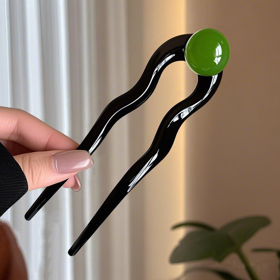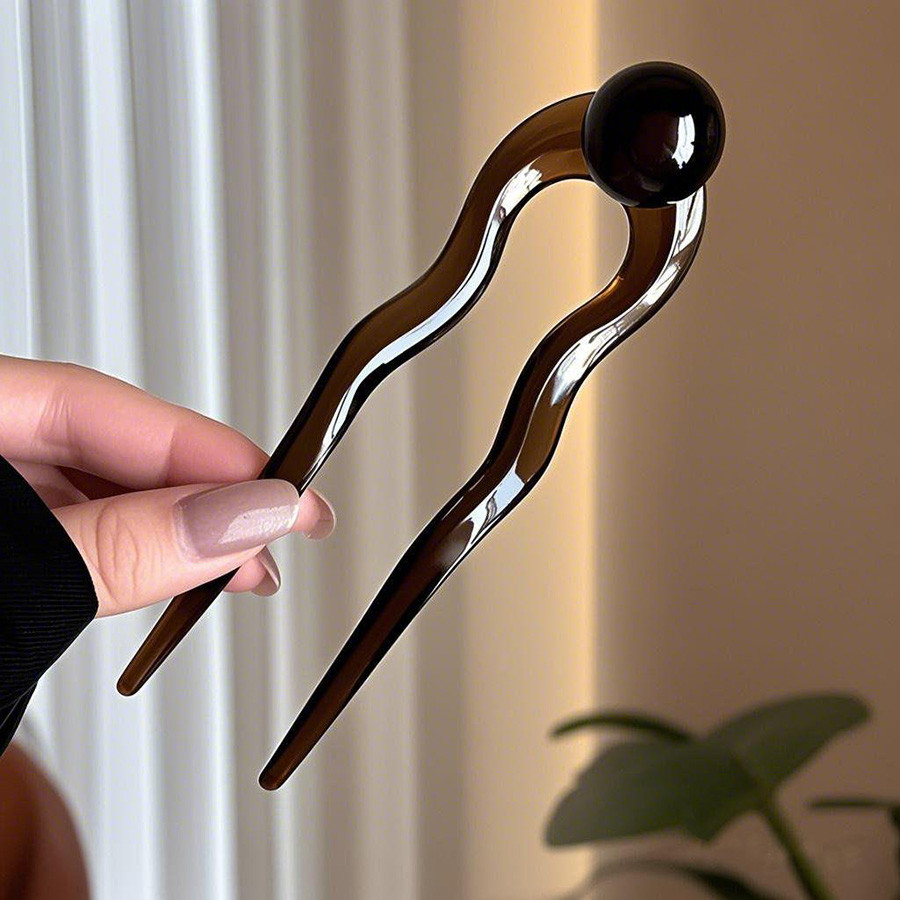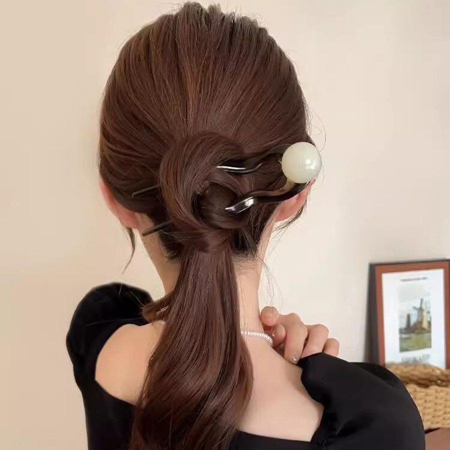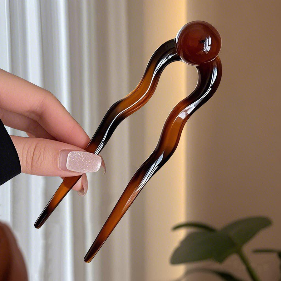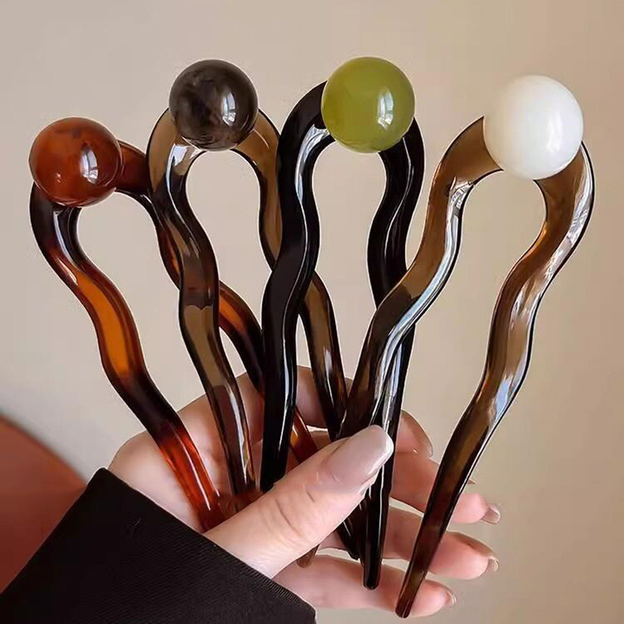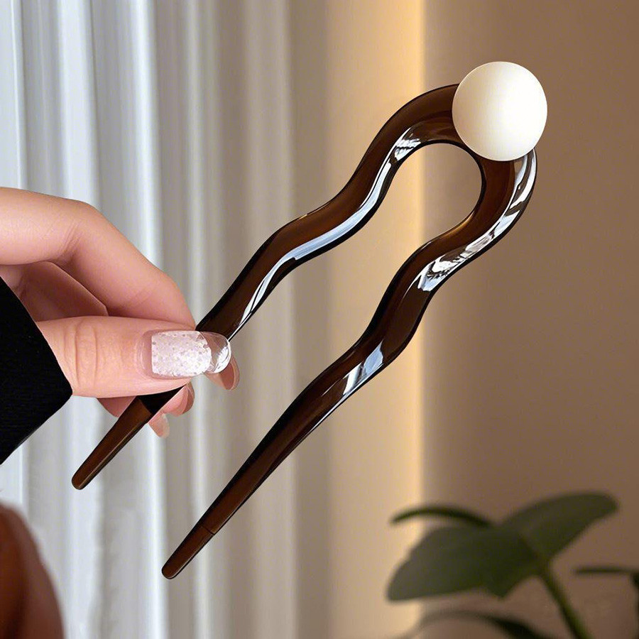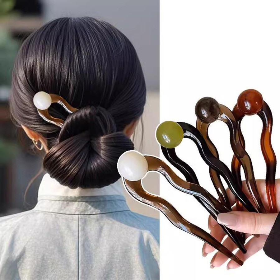 u-Shaped Retro Hairpin ดีไซน์มะพร้าว ทรงเรียบง่าย มีลูกปัดสำหรับทรงผมสไตล์จีนของผู้หญิง