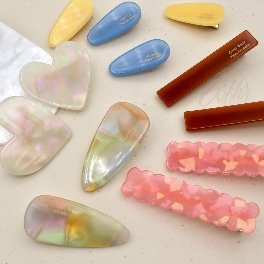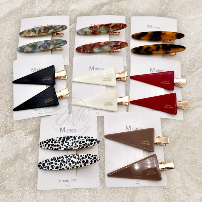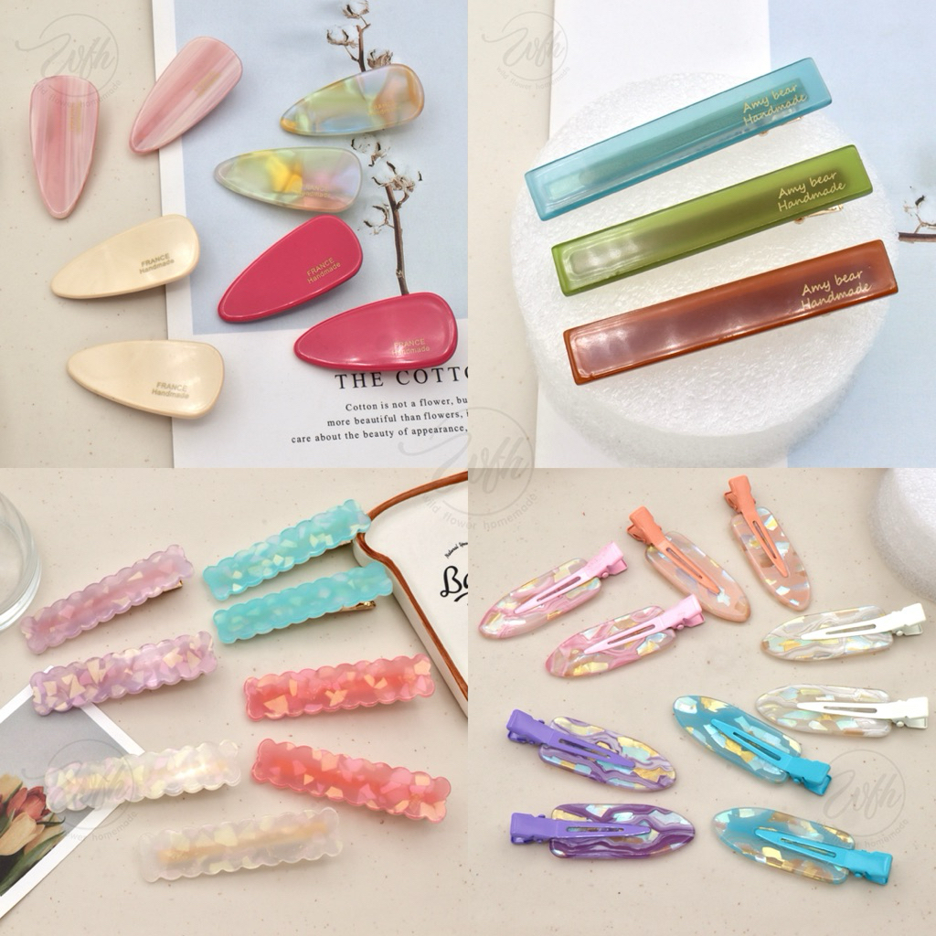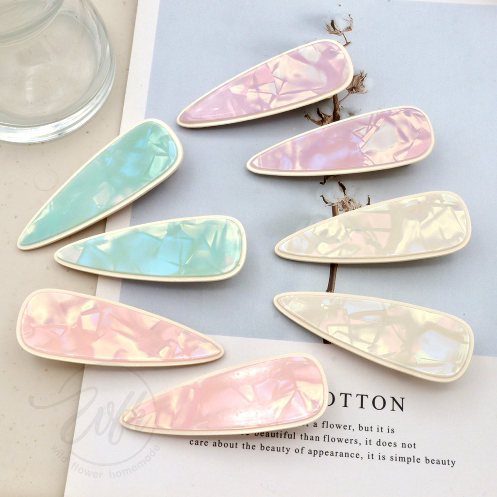 WFH กิ๊บเตารีดอะคริลิค เรซิ่น กิ๊บหยดน้ำ สามเหลี่ยม หัวใจ ติดผมผู้หญิงแบบรียาว ลายหินอ่อน ลายสีพาสเทล น่ารักสดใส