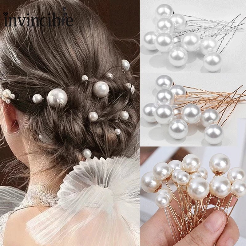 16 ชิ้น / ถุง ผู้หญิง หรูหรา มุกเทียม กิ๊บ / รูปตัว U มุก โลหะ ติดผม / มงกุฏเจ้าสาว เครื่องประดับผม