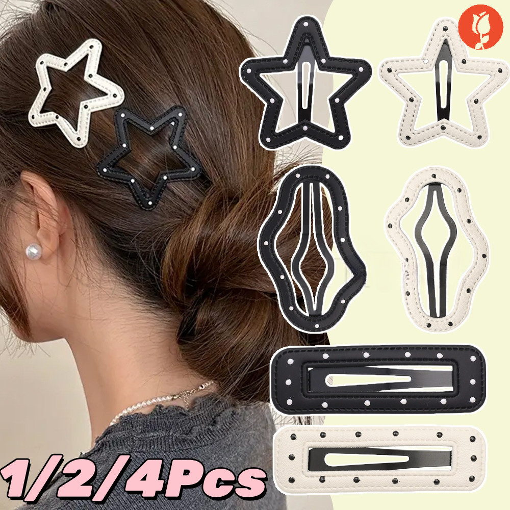 1/2/4 ชิ้นหวานน่ารัก Star Cloud รูป Polka Dot กิ๊บติดผม-แฟชั่น PU หนังสาวด้านข้าง Bangs BB Barrette- ความคิดสร้างสรรค์ที่ไม่ซ้ํากันผู้หญิง Snap Hairpins