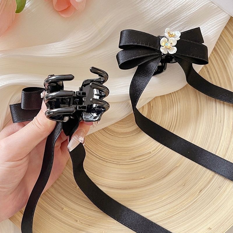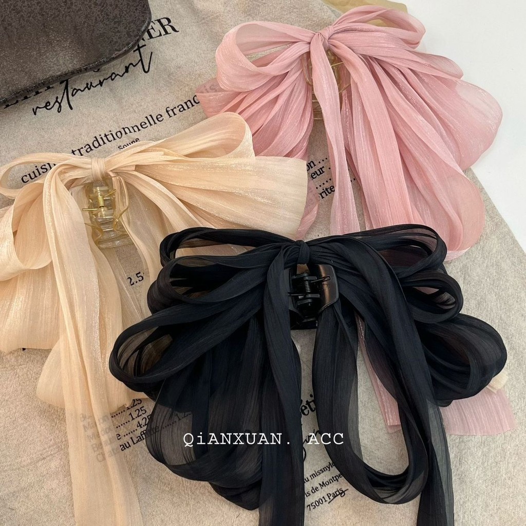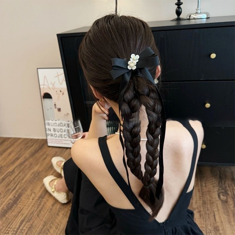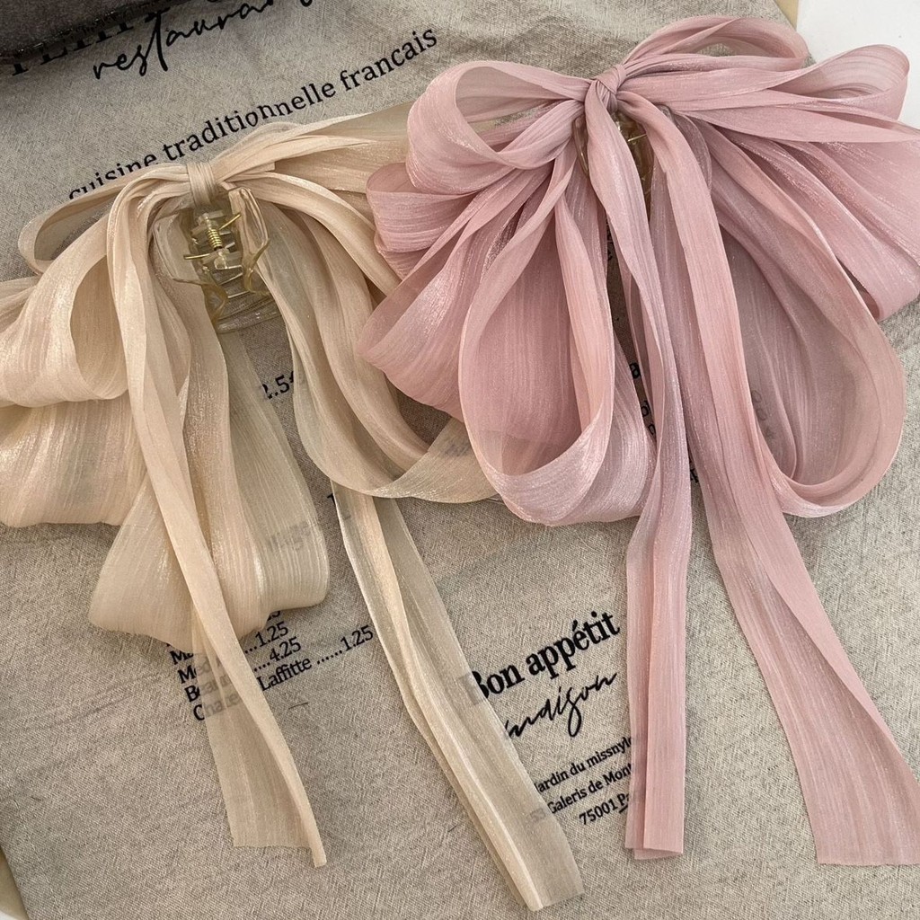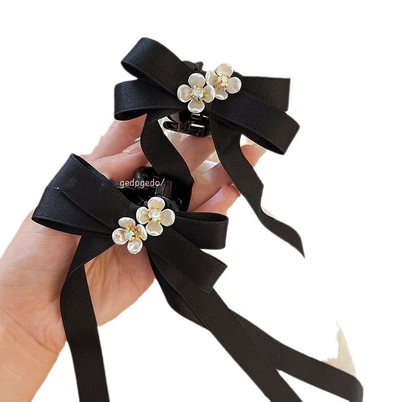 2025 Camellia Bow Streamer กิ๊บติดผมหางม้าคู่ย้อนยุค