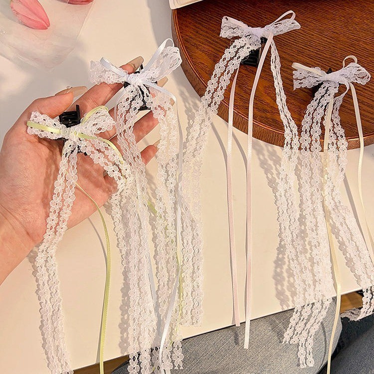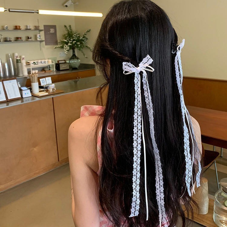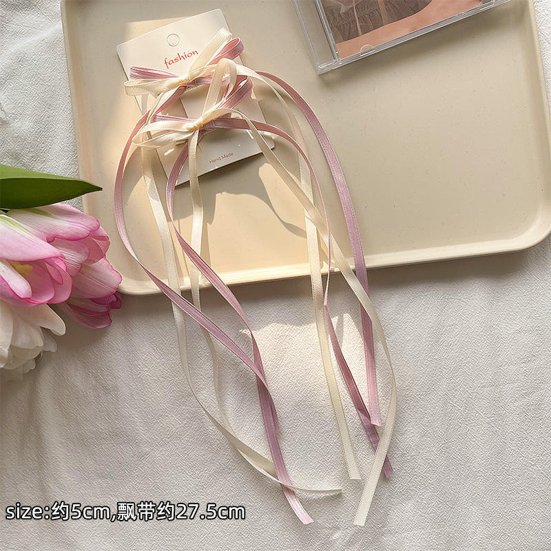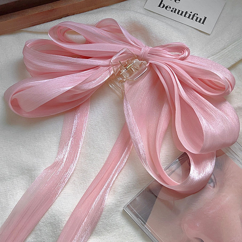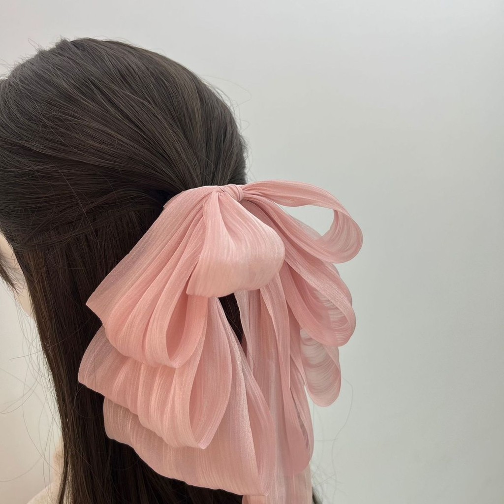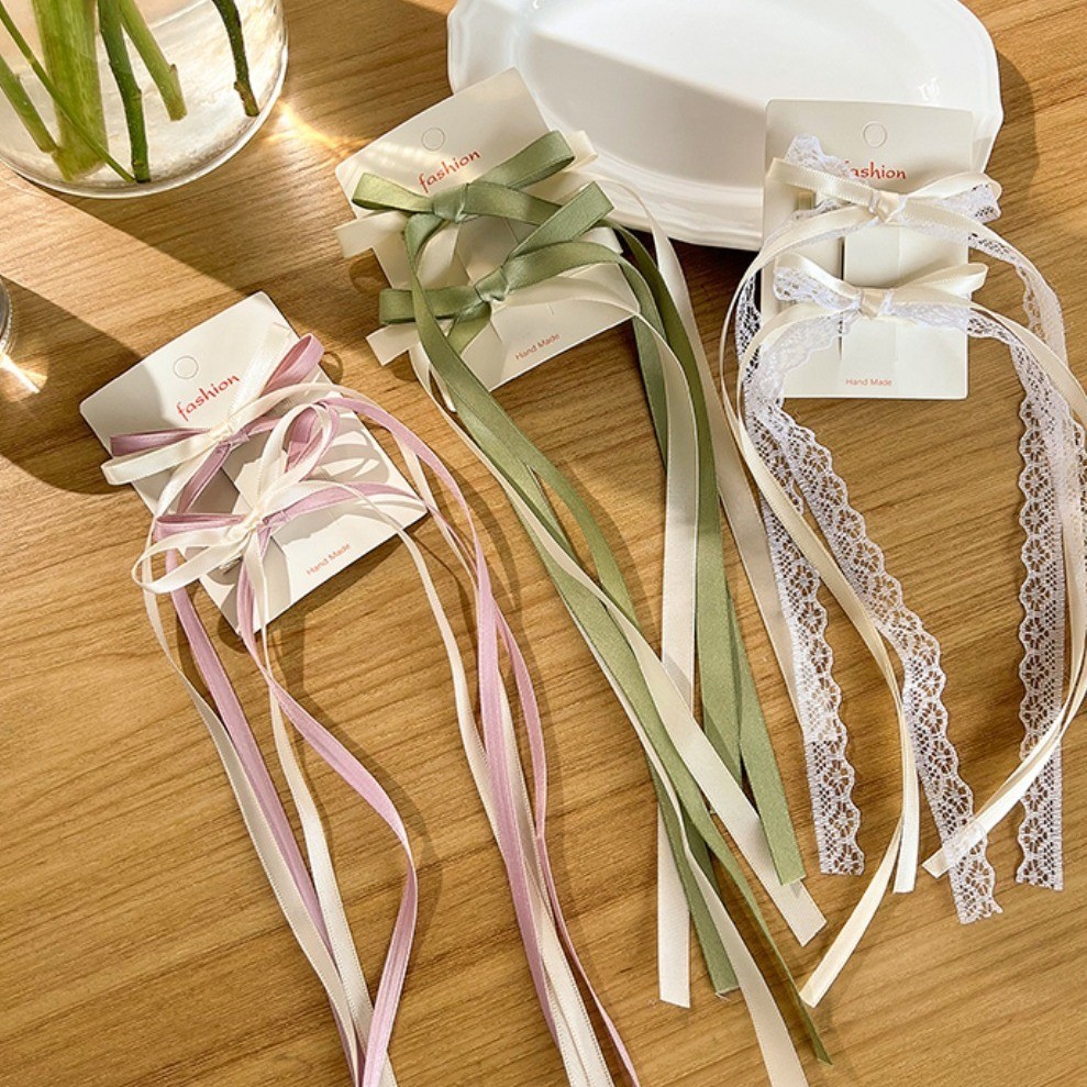 2025 Camellia Bow Streamer กิ๊บติดผมหางม้าคู่ย้อนยุค
