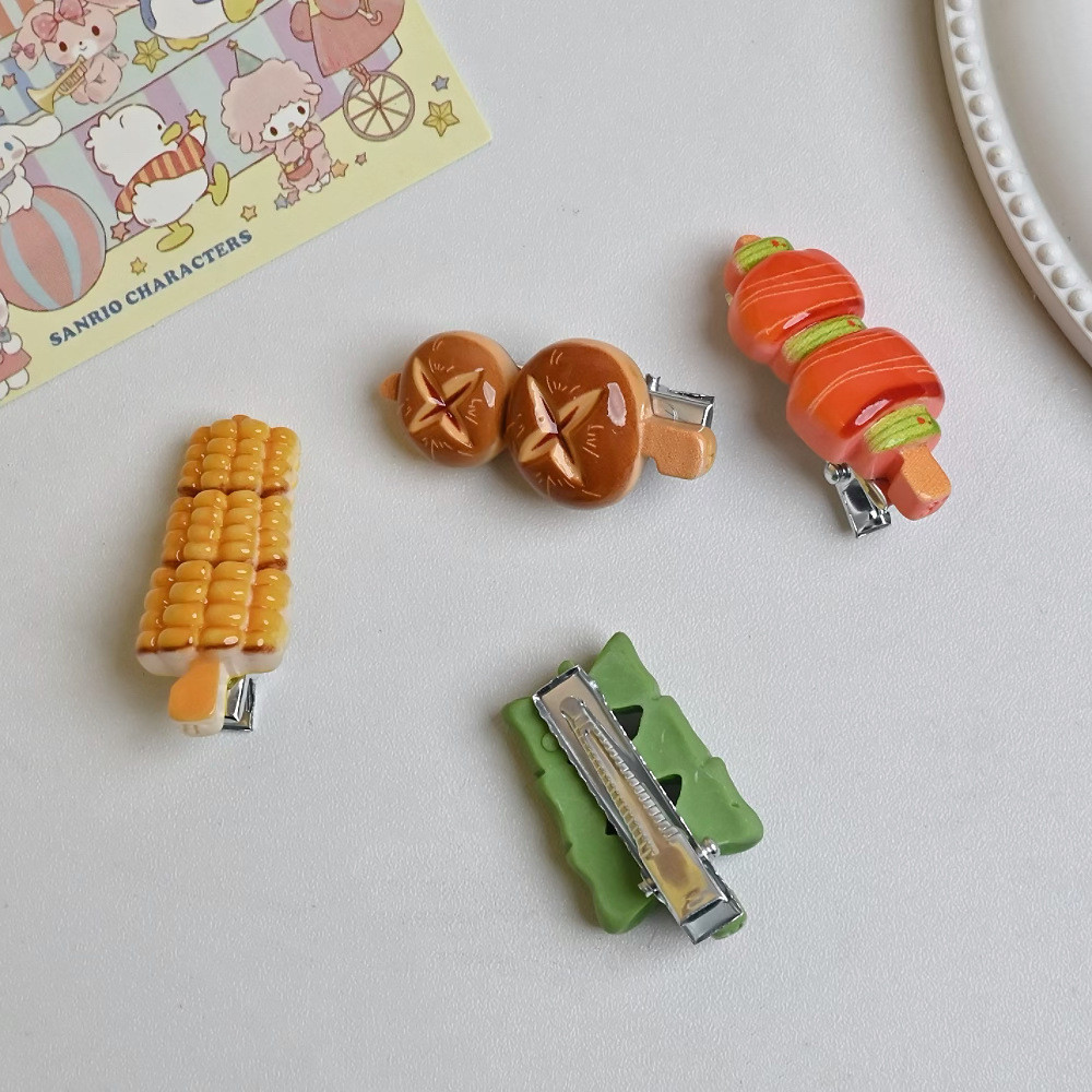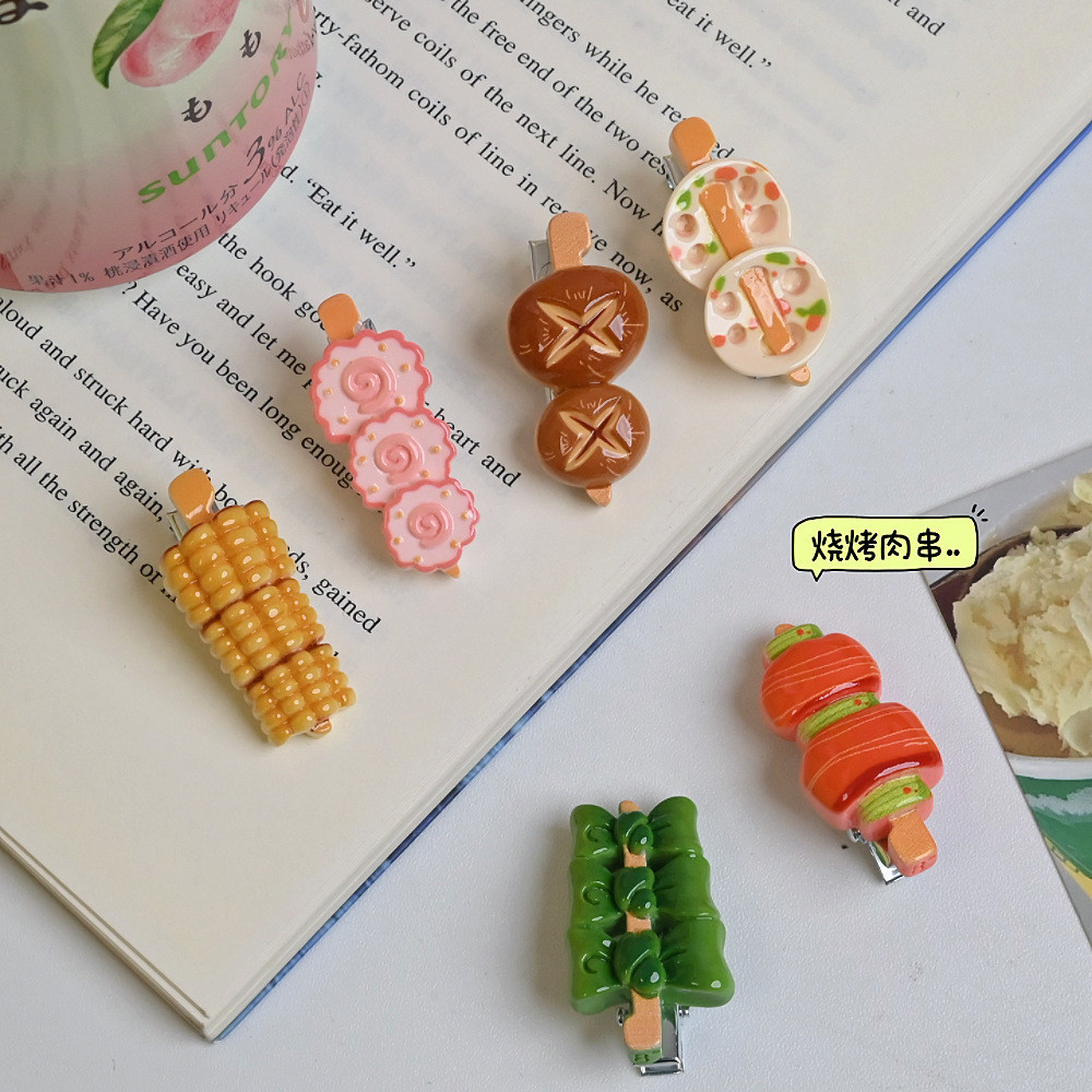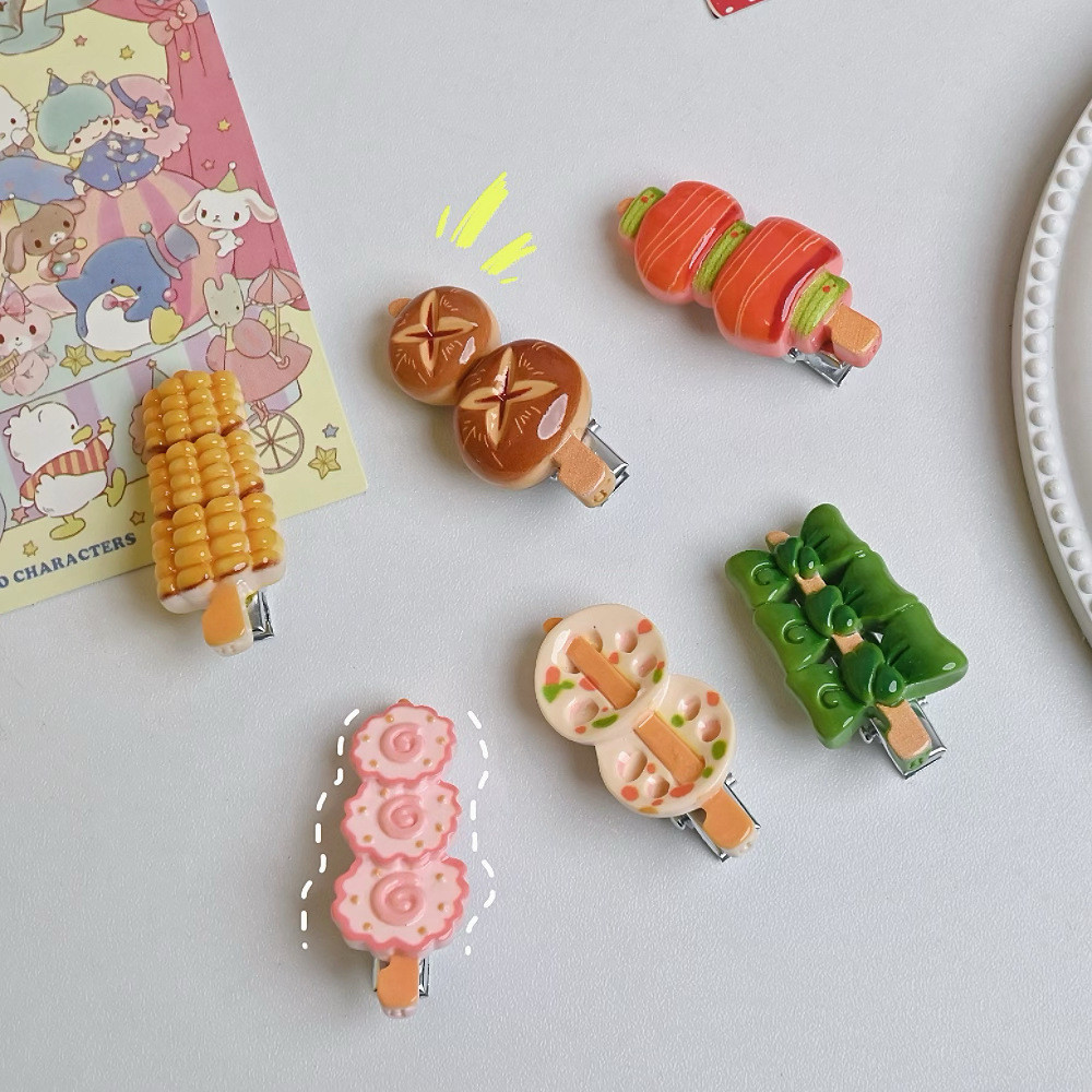 2024 บาร์บีคิว Skewer Hairpin ตลก All-Match Duckbill คลิปสาวหวานหัวใจ Hairpin