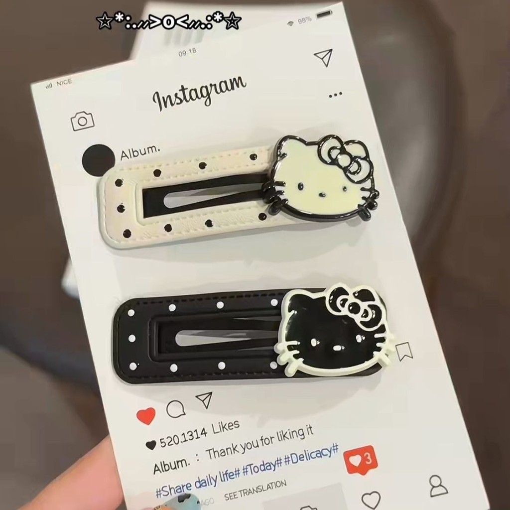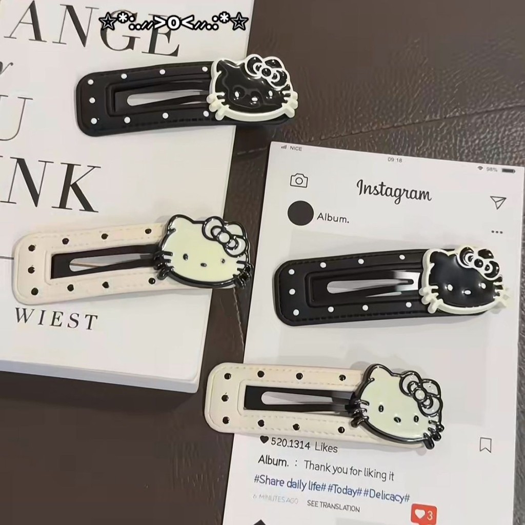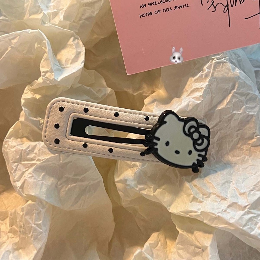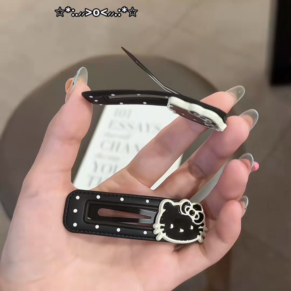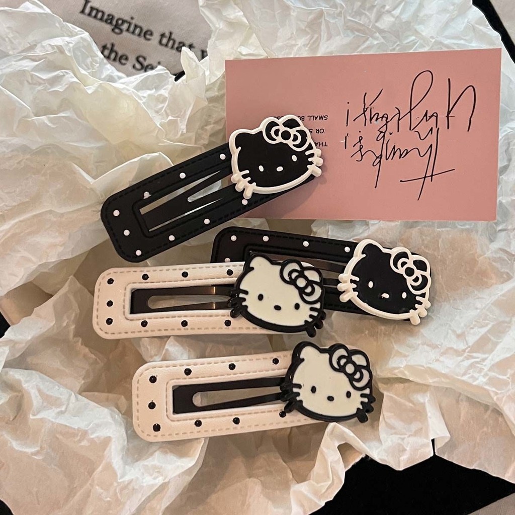 2024 สีดําสีขาว Polka Dot kt Cat กิ๊บติดผมหนังน่ารัก BB คลิปด้านข้าง