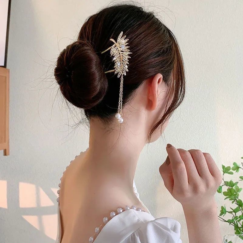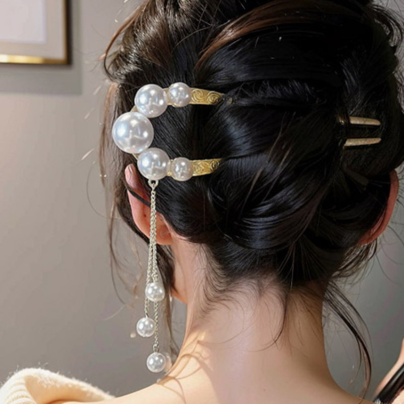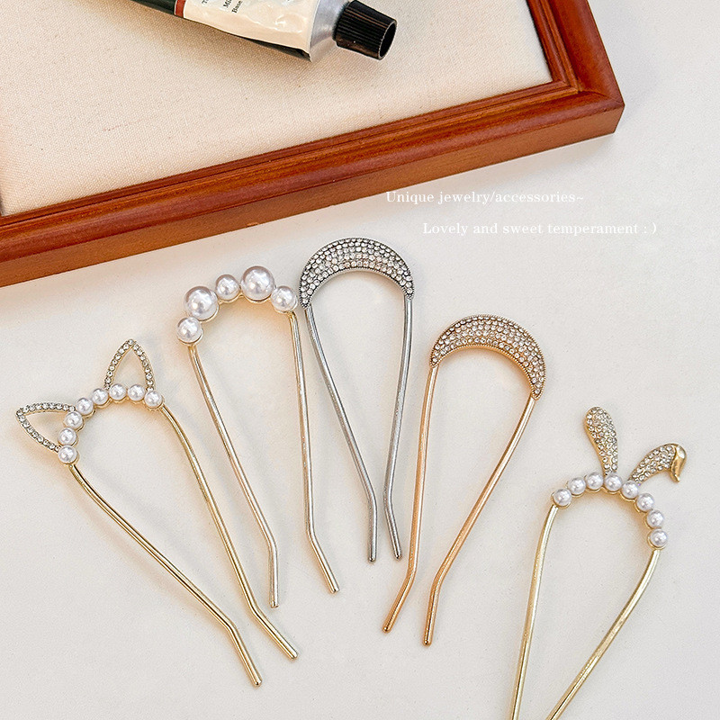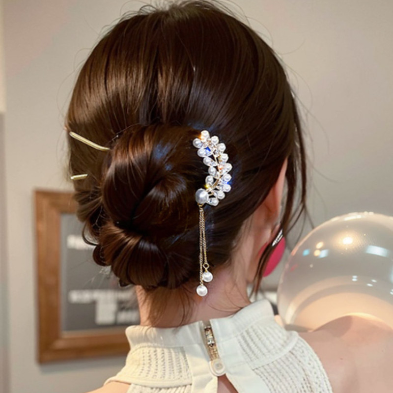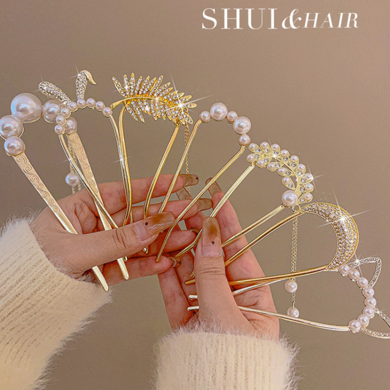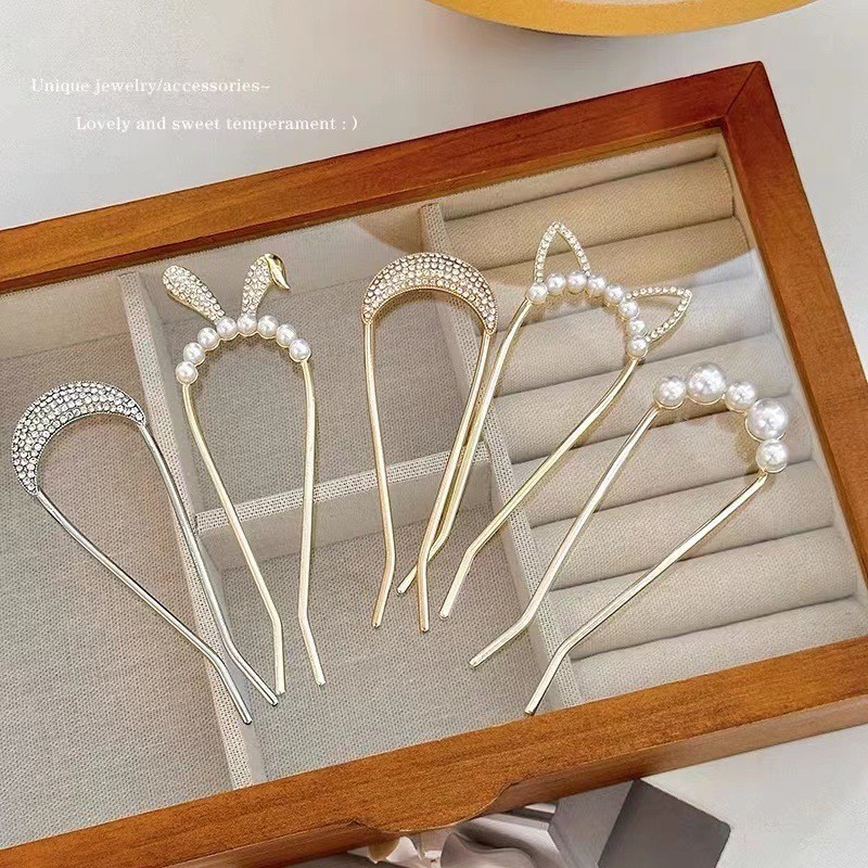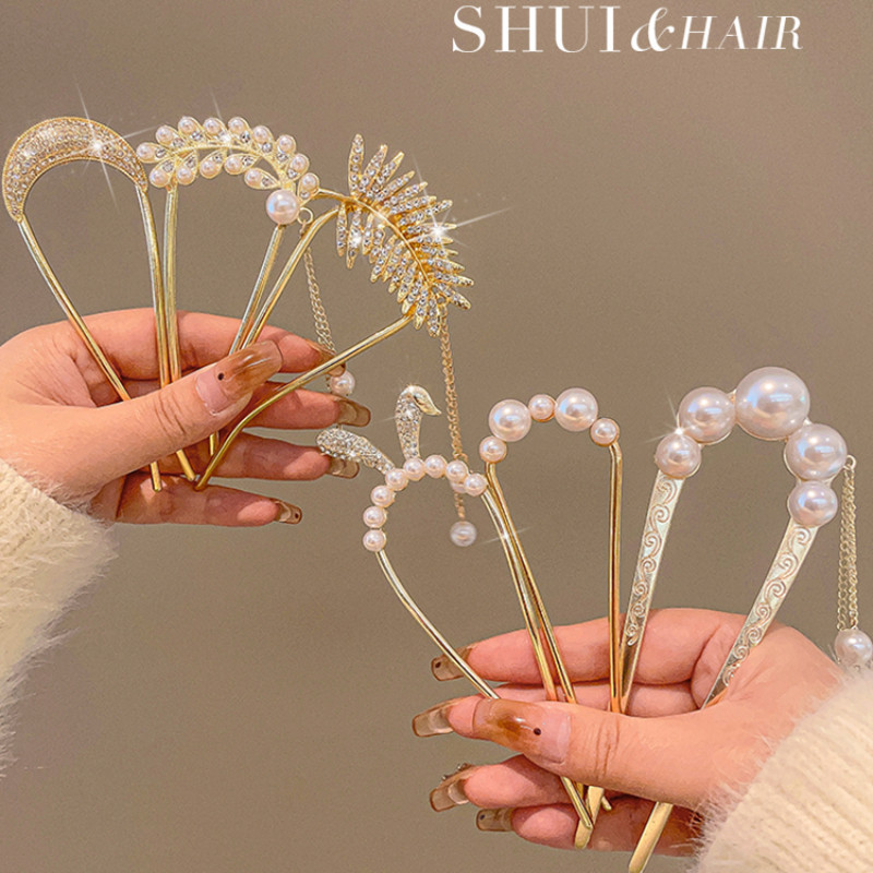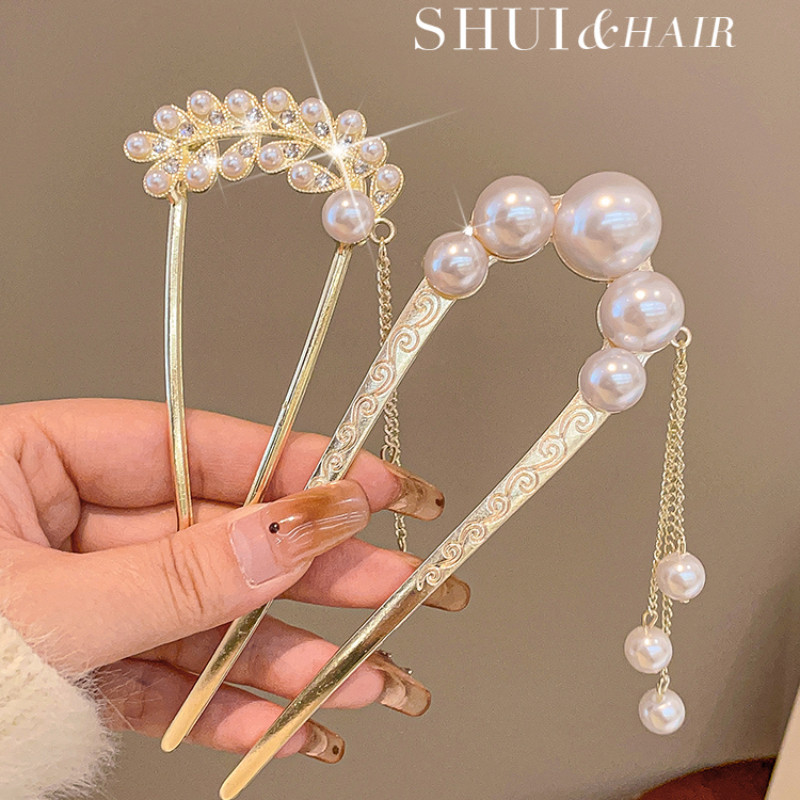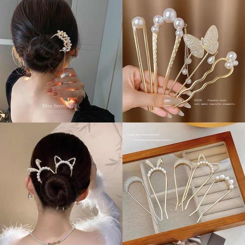 4 ชิ้น เซตใหม่ สไตล์จีน แฟชั่นระดับไฮเอนด์ รูปตัวยู มุก พลอยเทียม กิ๊บติดผม สําหรับผู้หญิง