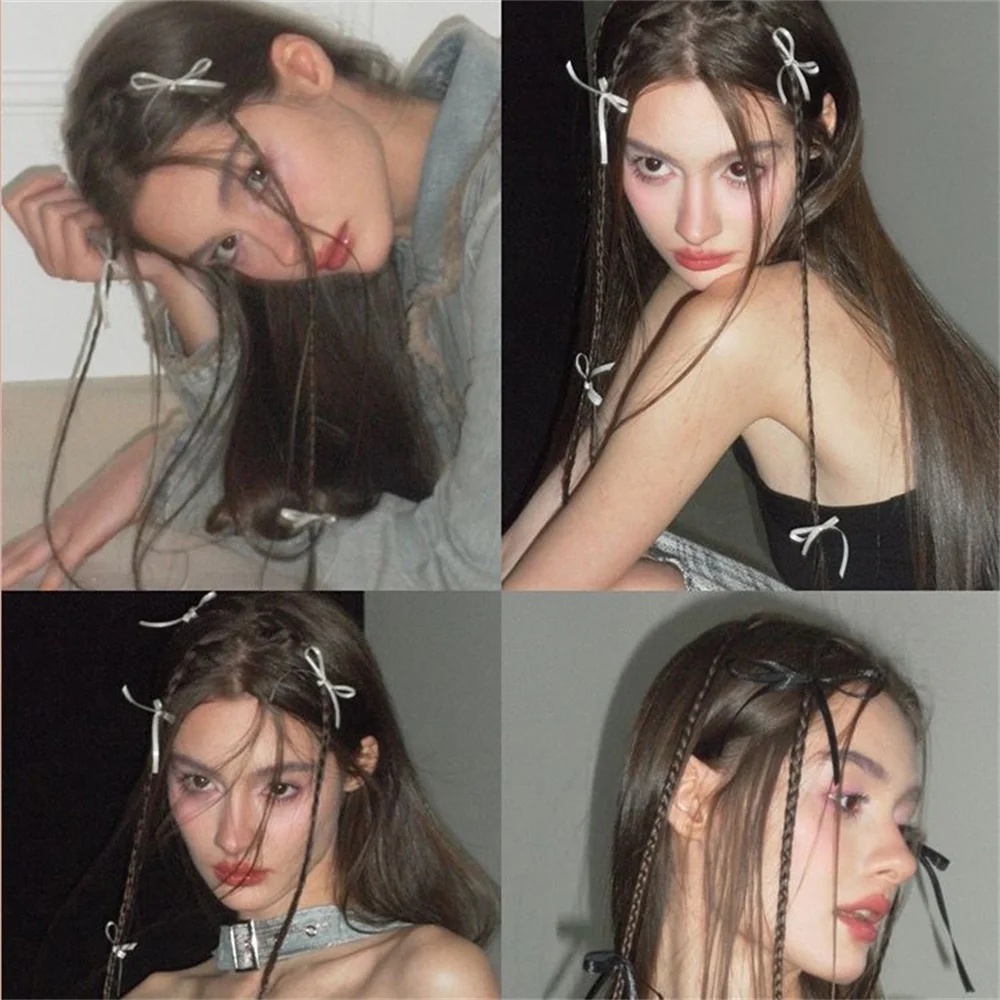 4 ชิ้นโบว์ริบบิ้น Duckbill คลิป Y2K ชุดกิ๊บติดผมหางม้าคู่สําหรับเด็กผู้หญิง