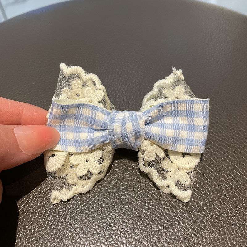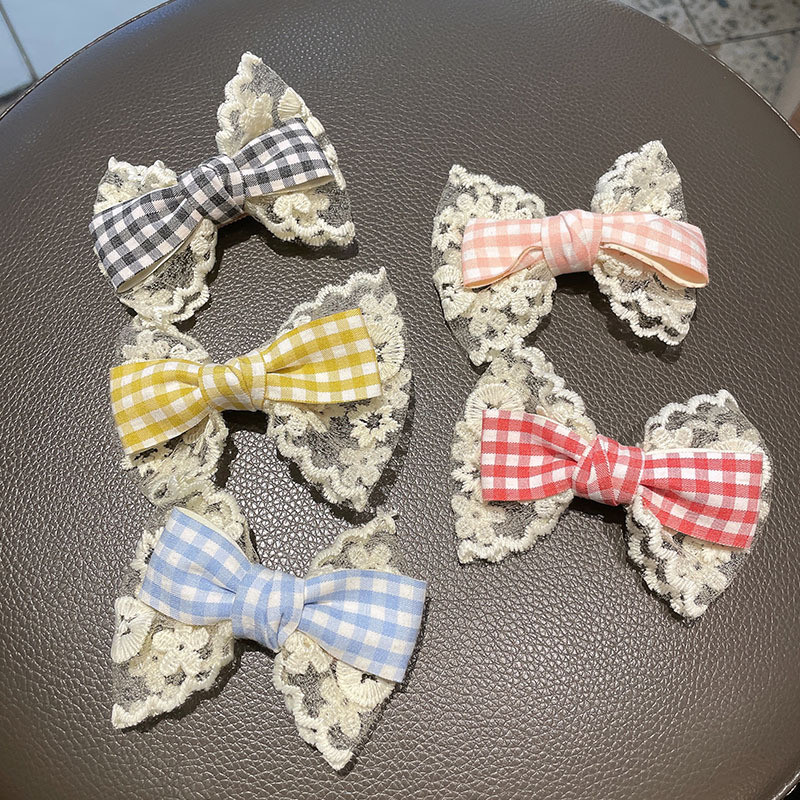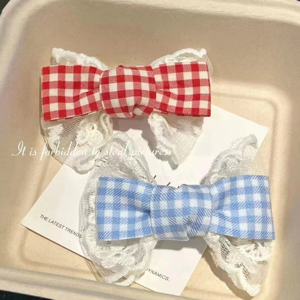 2025 ผ้าโพกศีรษะโบว์ลายสก๊อตลูกไม้ผ้าฤดูใบไม้ผลิ