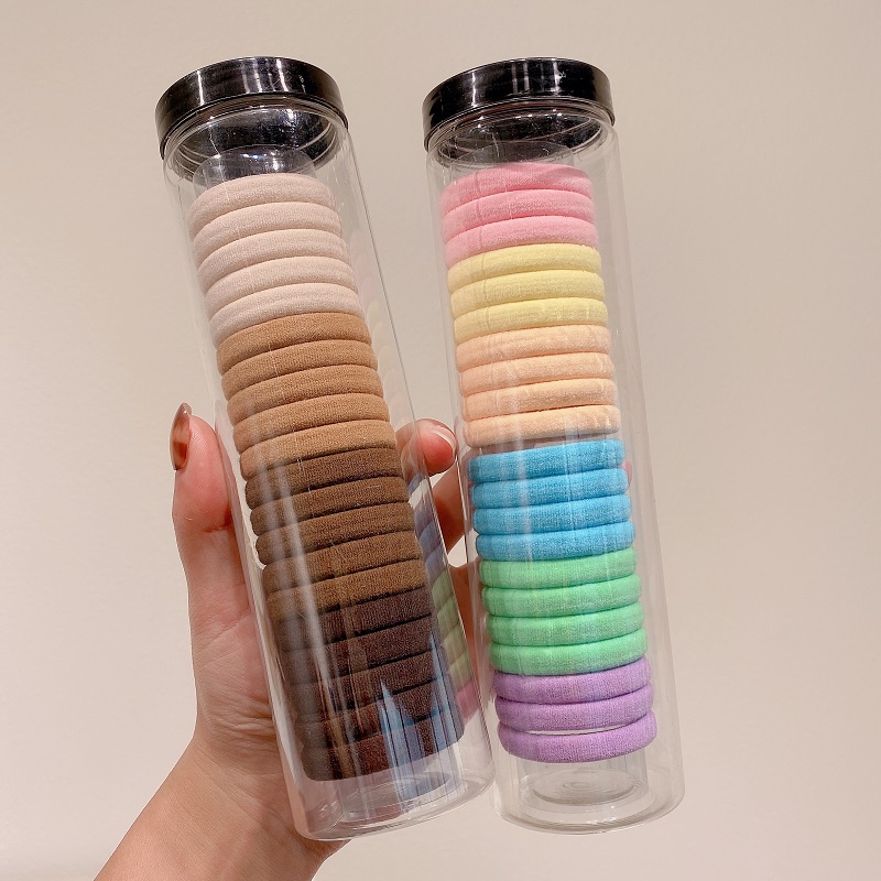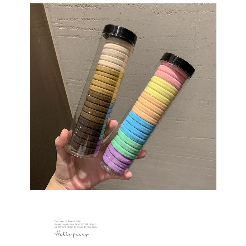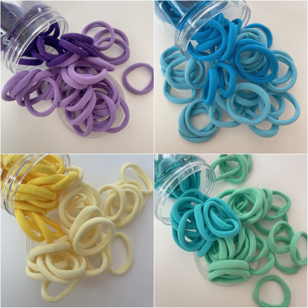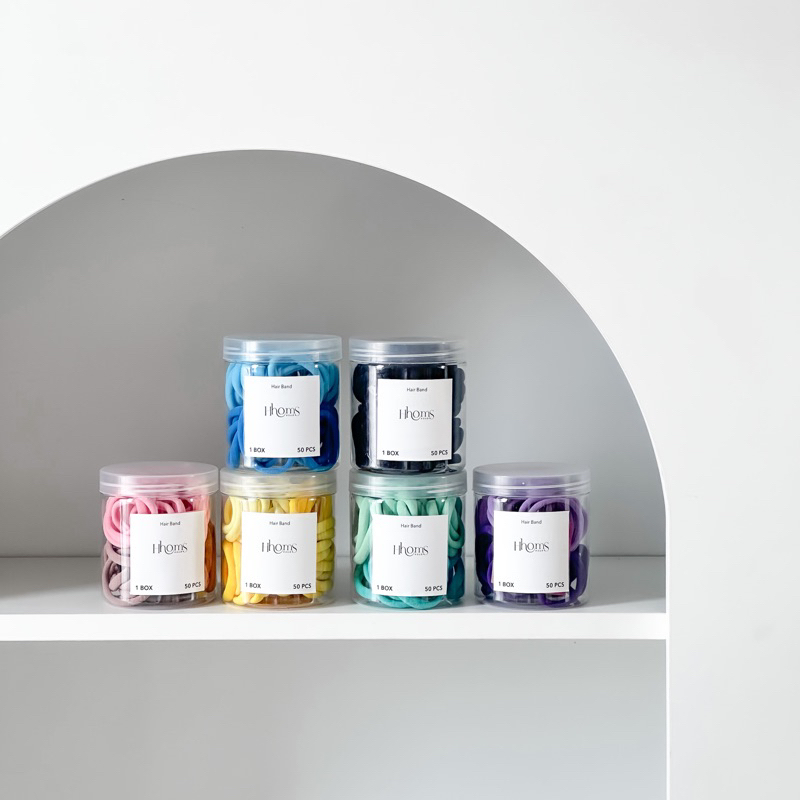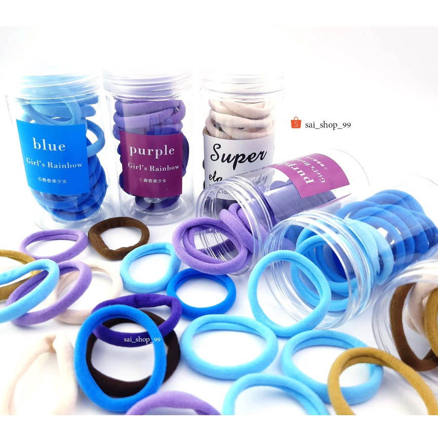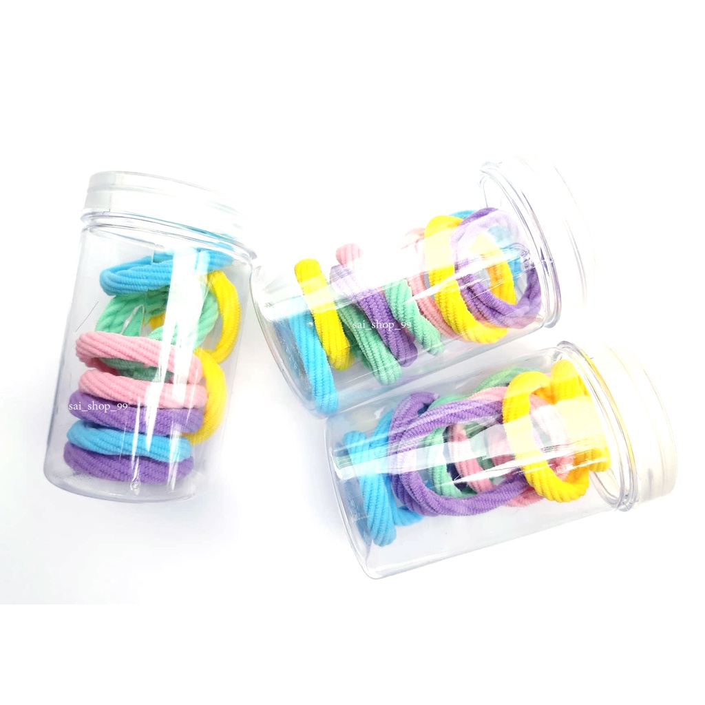 ยางรัดผม ยางมัดผม สีพื้นยืดหยุน แบบกระปุก 50 ชิ้น