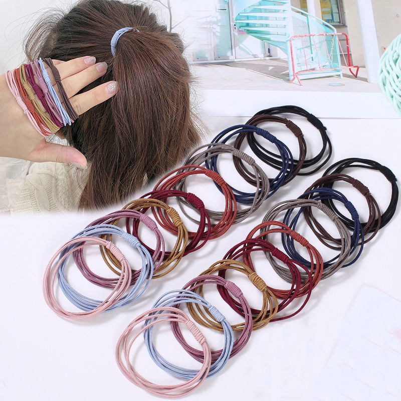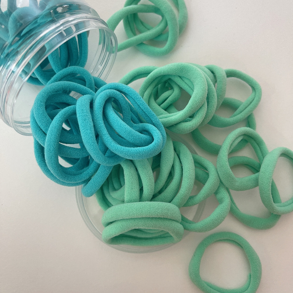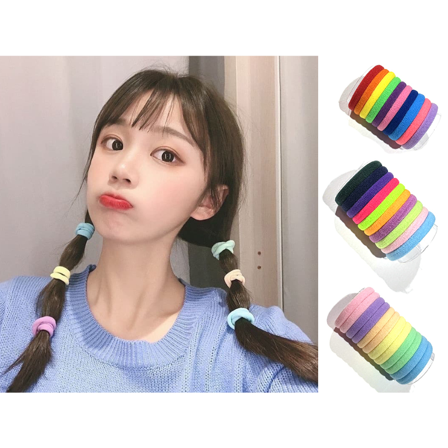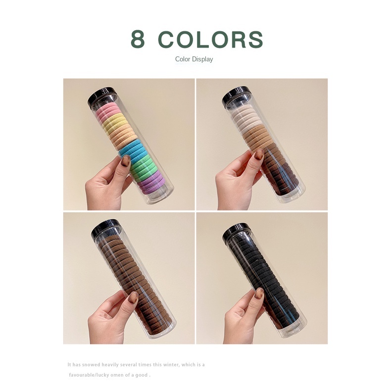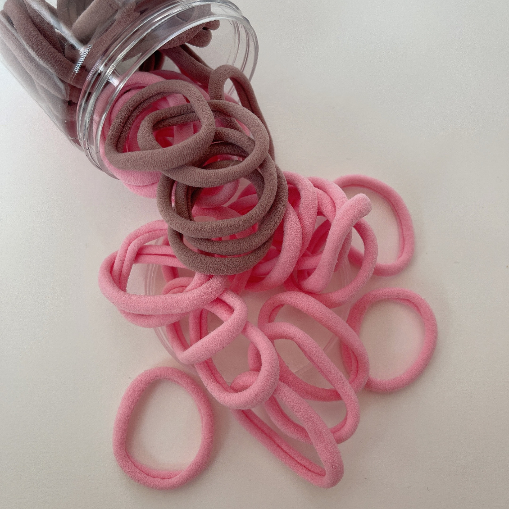 ยางรัดผม ยางมัดผม สีพื้นยืดหยุน แบบกระปุก 50 ชิ้น