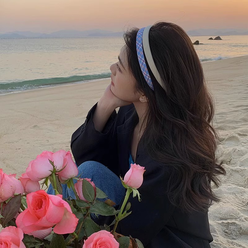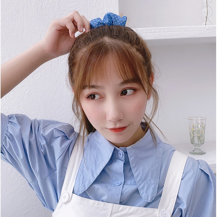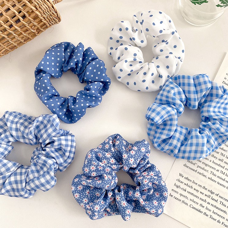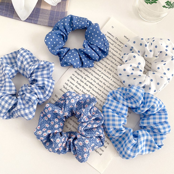 ยางรัดผม ลายสก๊อต สีฟ้าน่ารัก สำหรับผู้หญิง