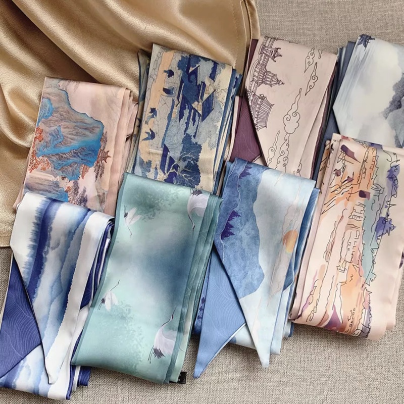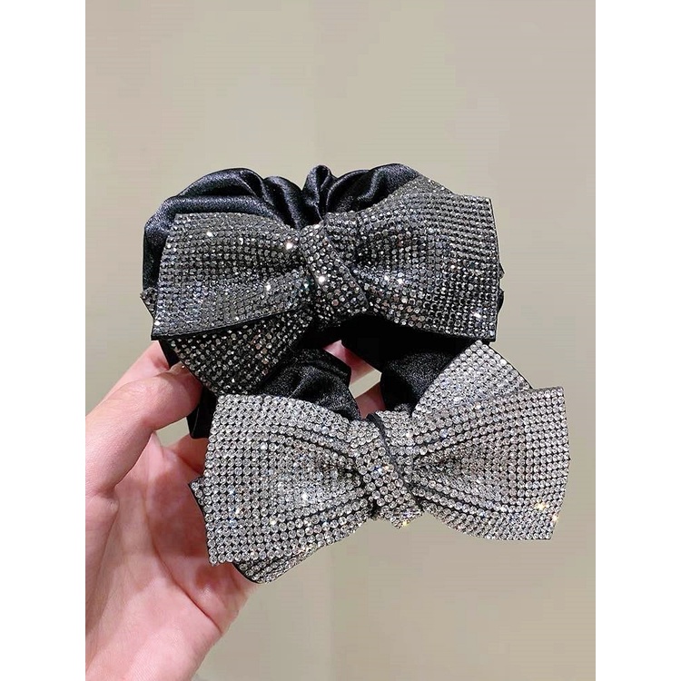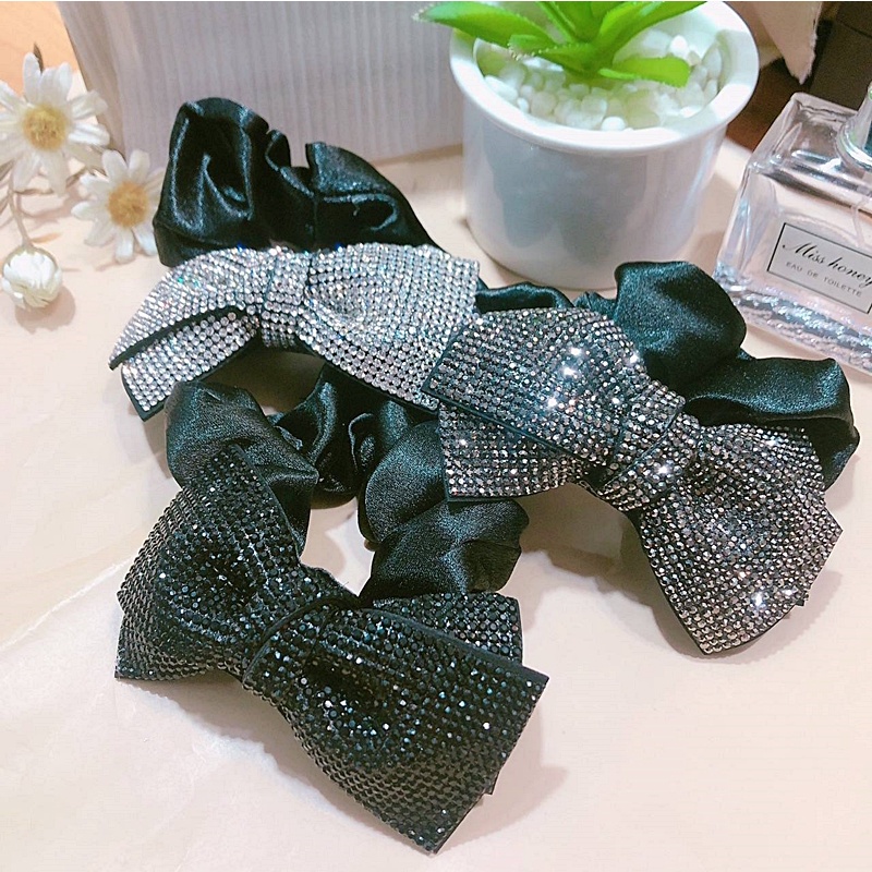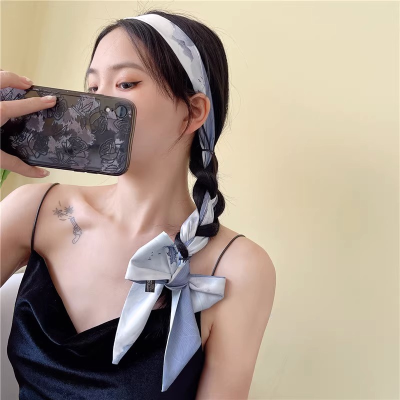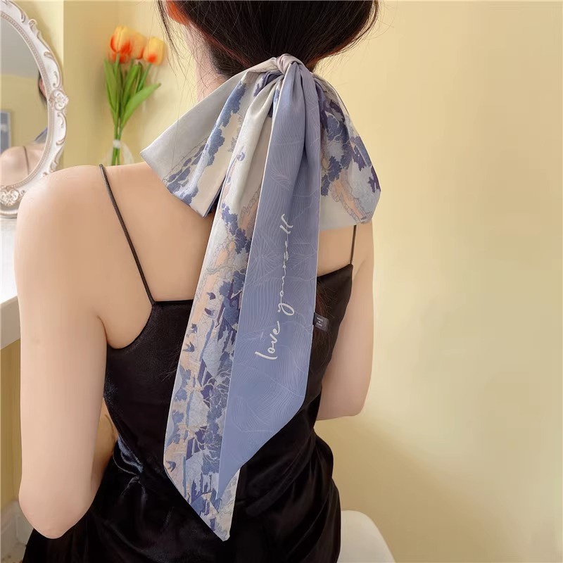 ยางรัดผม ผ้าพันคอ ผ้าเรยอน ผูกโบว์ สไตล์เกาหลี หรูหรา สําหรับผู้หญิง