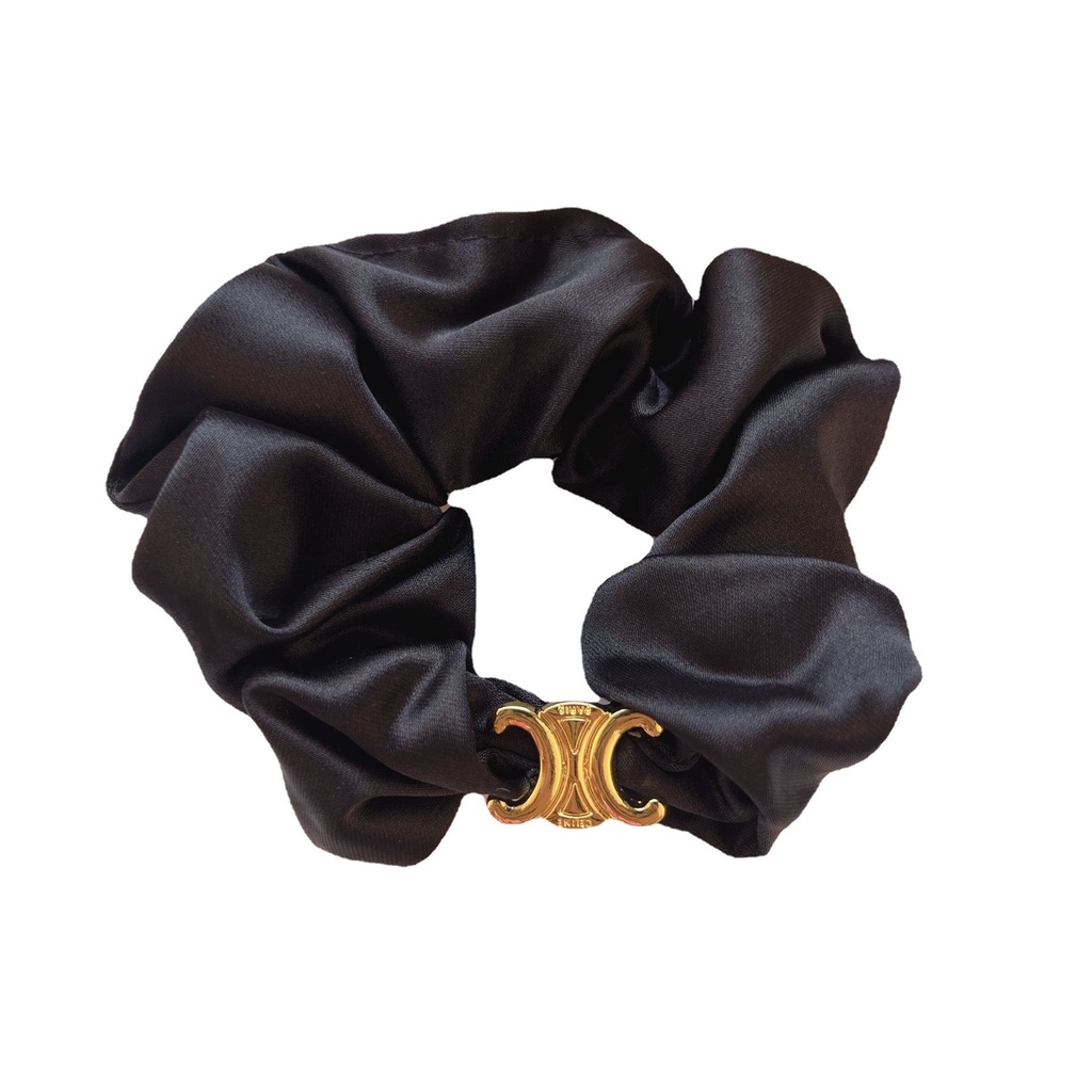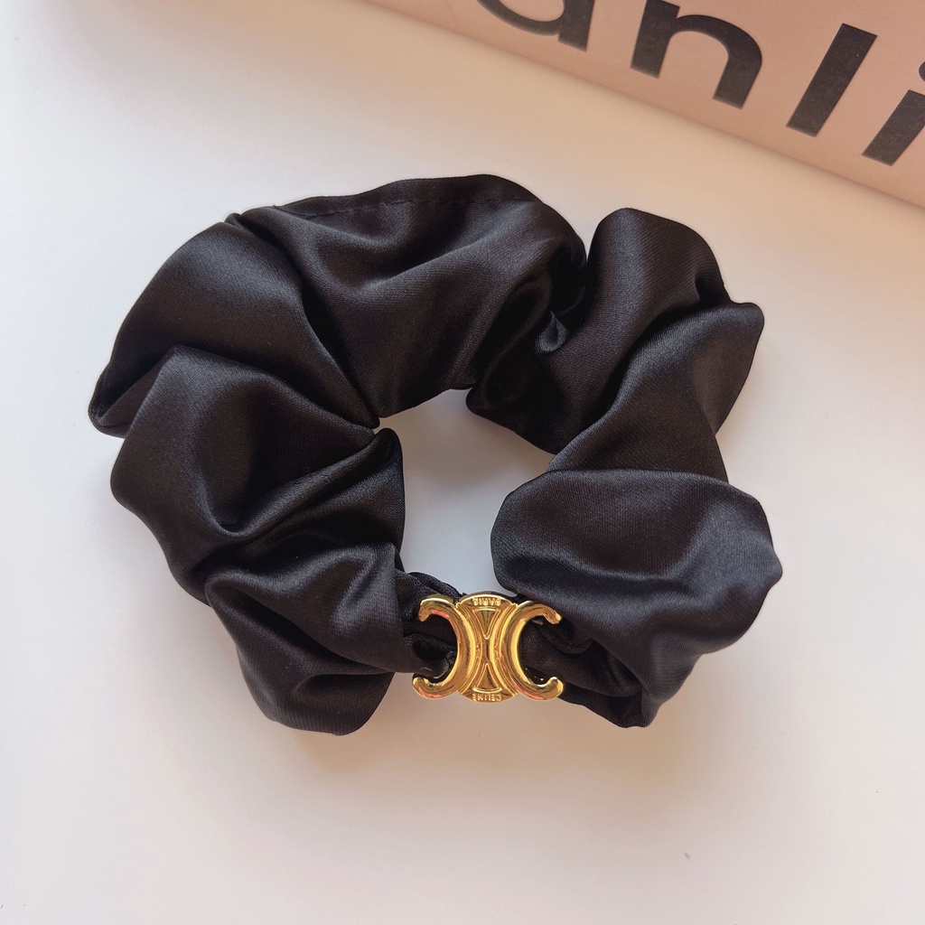 ยางรัดผม ผ้าซาติน เคลือบเงา สีดํา ขนาดใหญ่ และเล็ก สไตล์มินิมอล แฟชั่นสําหรับผู้หญิง