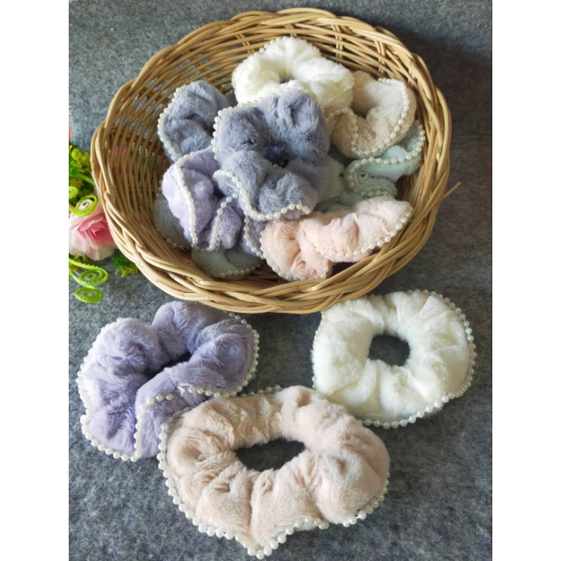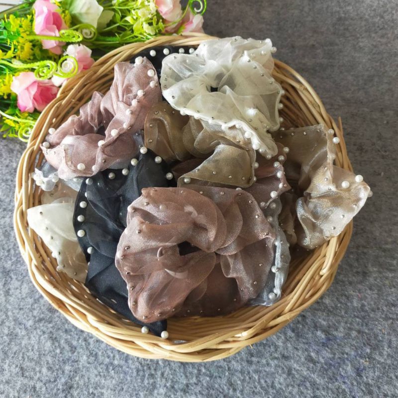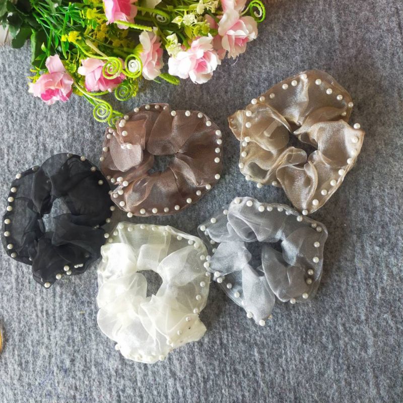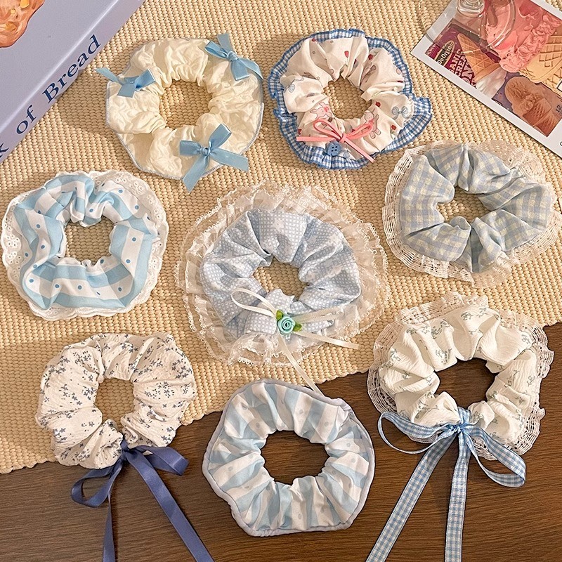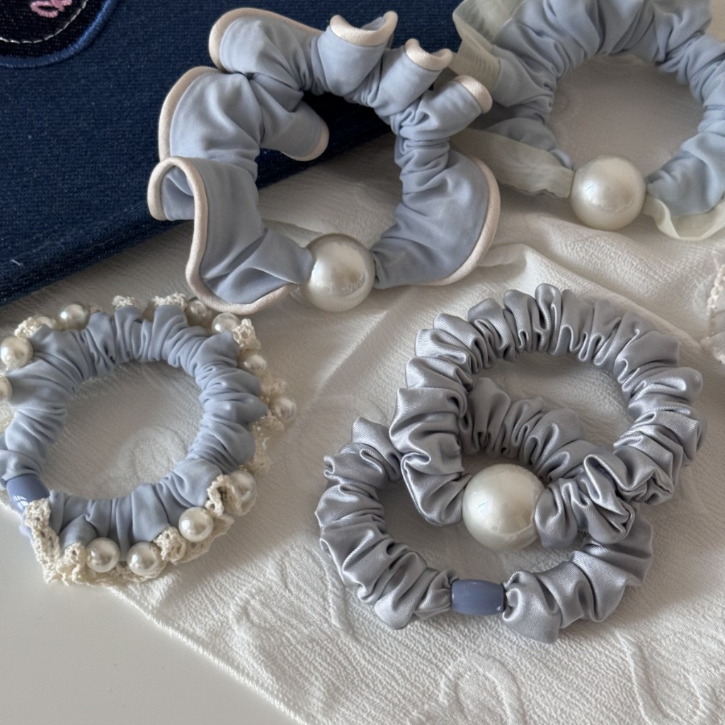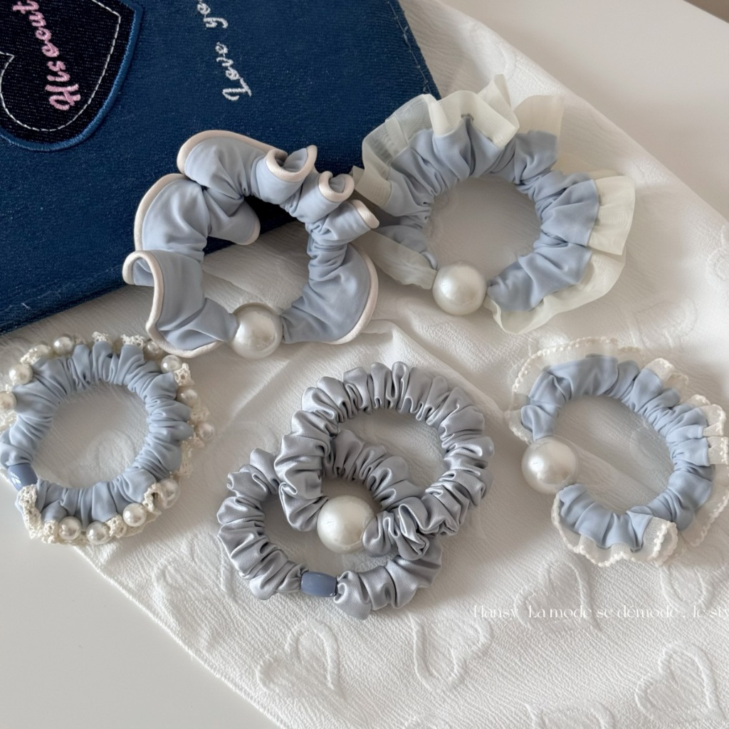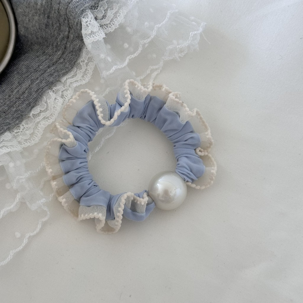 แหวนผมสีฟ้าที่เรียบง่ายมุกลูกไม้ผูกผมยางรัด