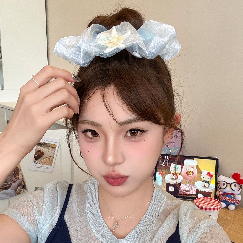 แฟนตาซีปุยนางเงือกตาข่ายผ้ากอซปลาดาวขนาดใหญ่ลําไส้ผมวงกลมผู้หญิงแฟชั่นส่วนบุคคลคาดศีรษะอุปกรณ์ผมขนาดใหญ่
