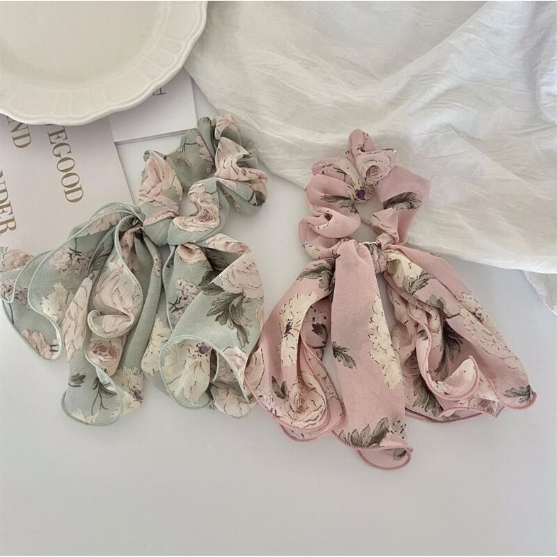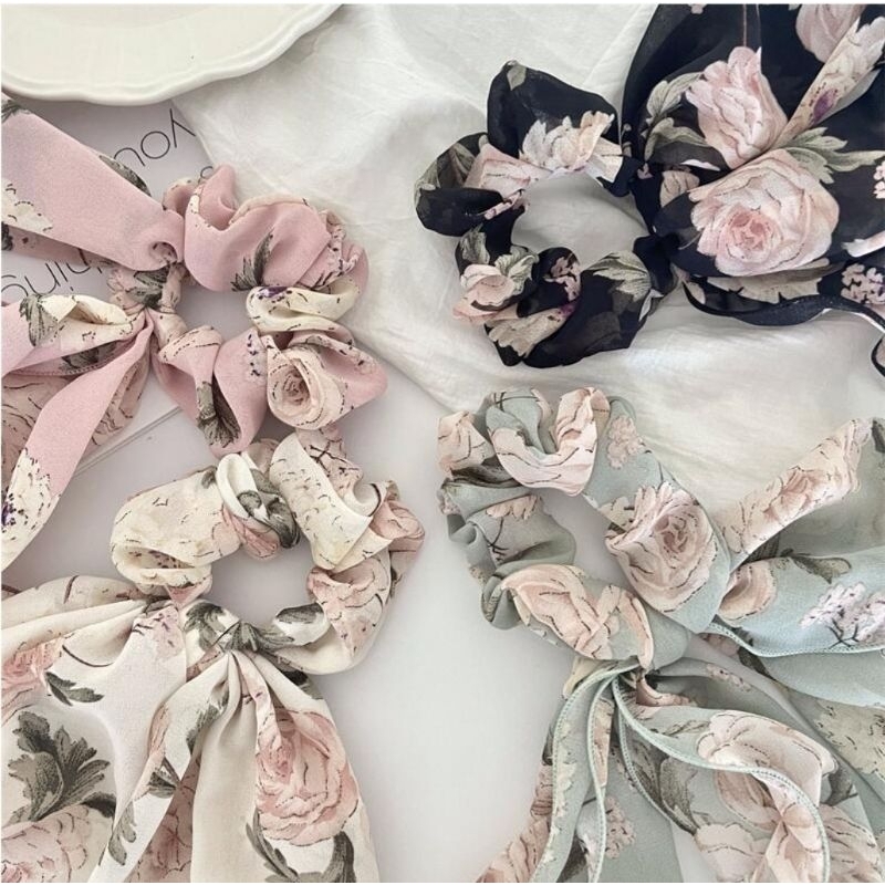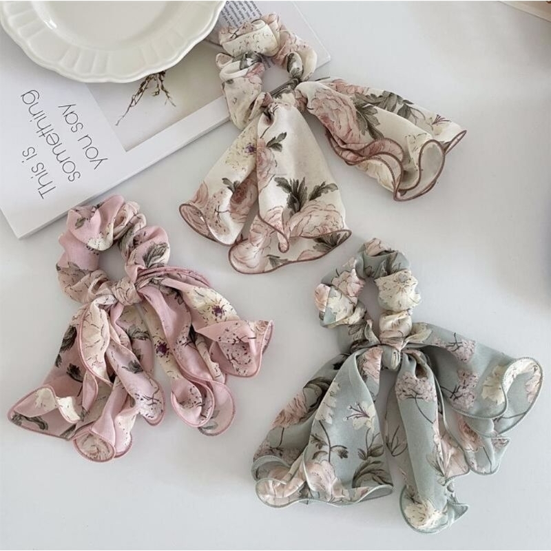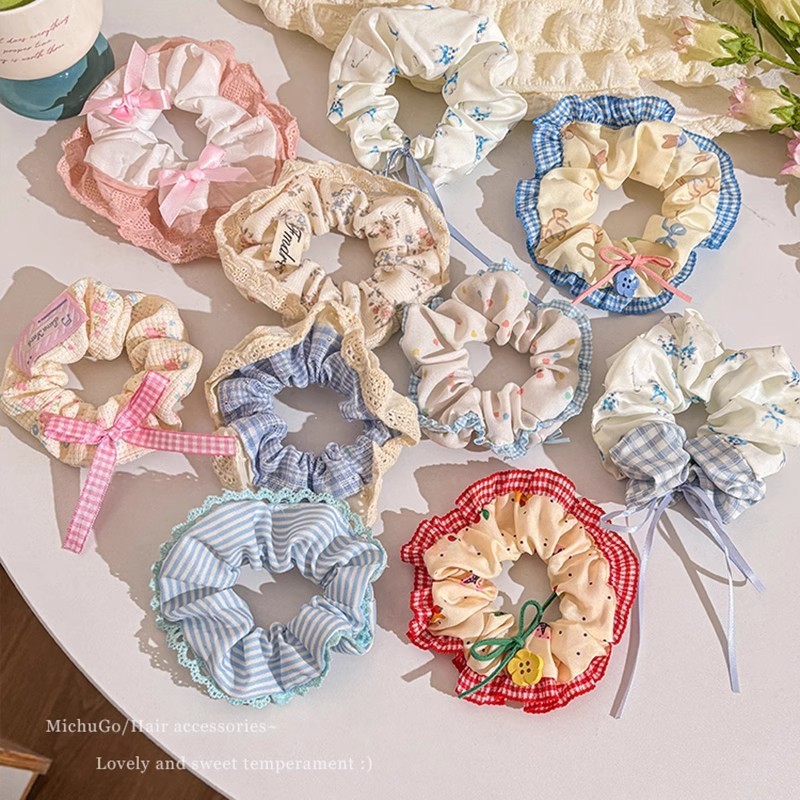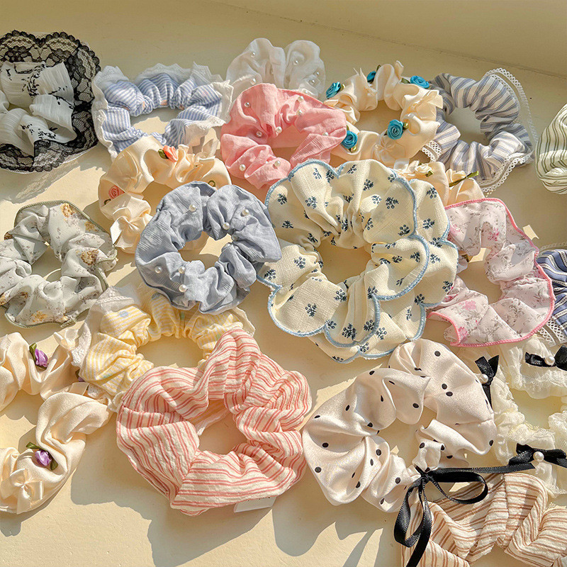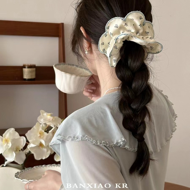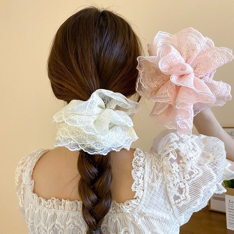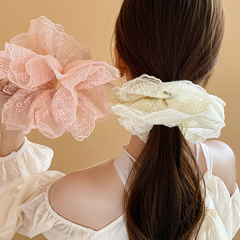 แหวนผมลูกไม้ผู้หญิงฝรั่งเศสสี่ชั้น Scrunchie Sweetheart ดอกไม้สายไฟเครื่องประดับผม