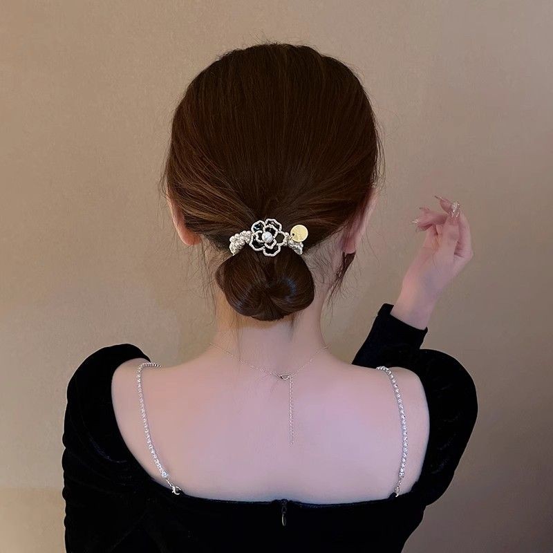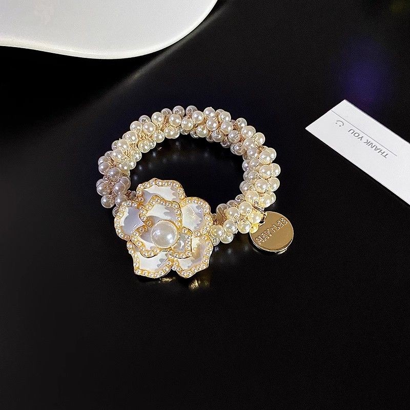 แสงหรูหราแฟชั่นมุก ดอกเคมีเลีย แหวนผม 2025 สไตล์ใหม่ความรู้สึกระดับไฮเอนด์แถบคาดศีรษะที่ดีงาม
