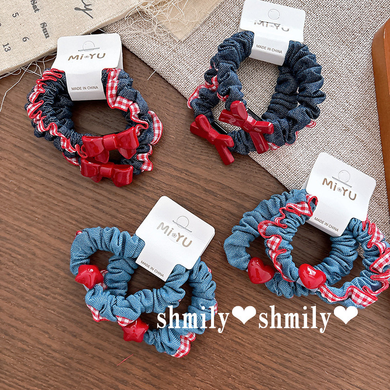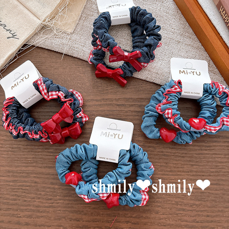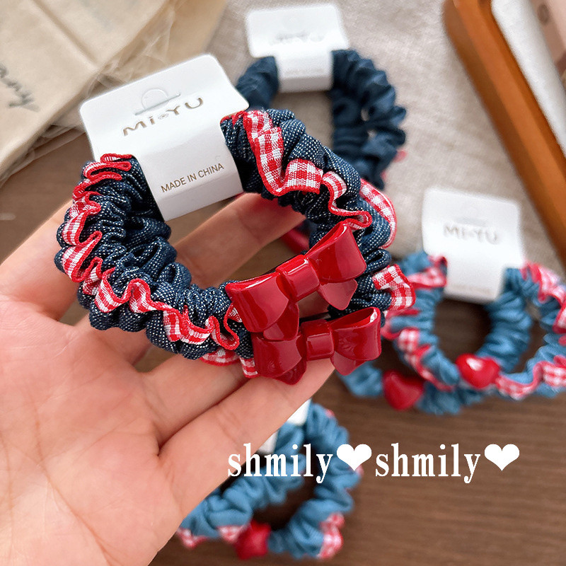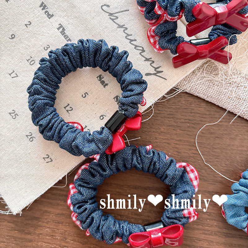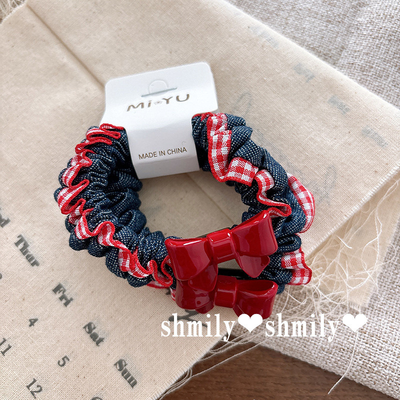 แหวนลายสก๊อตและโบว์สีแดง ออกแบบสไตล์ยีนส์ลูกไม้ สำหรับคนชอบแฟชันศิลปะ
