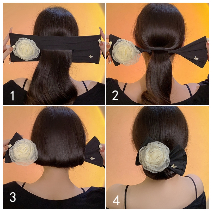 โบว์มัดผม ที่มัดผมลายดอกไม้ โบว์มวยผม ใส่ออกงานได้ ติดแน่น สวยหรู ดูแพง