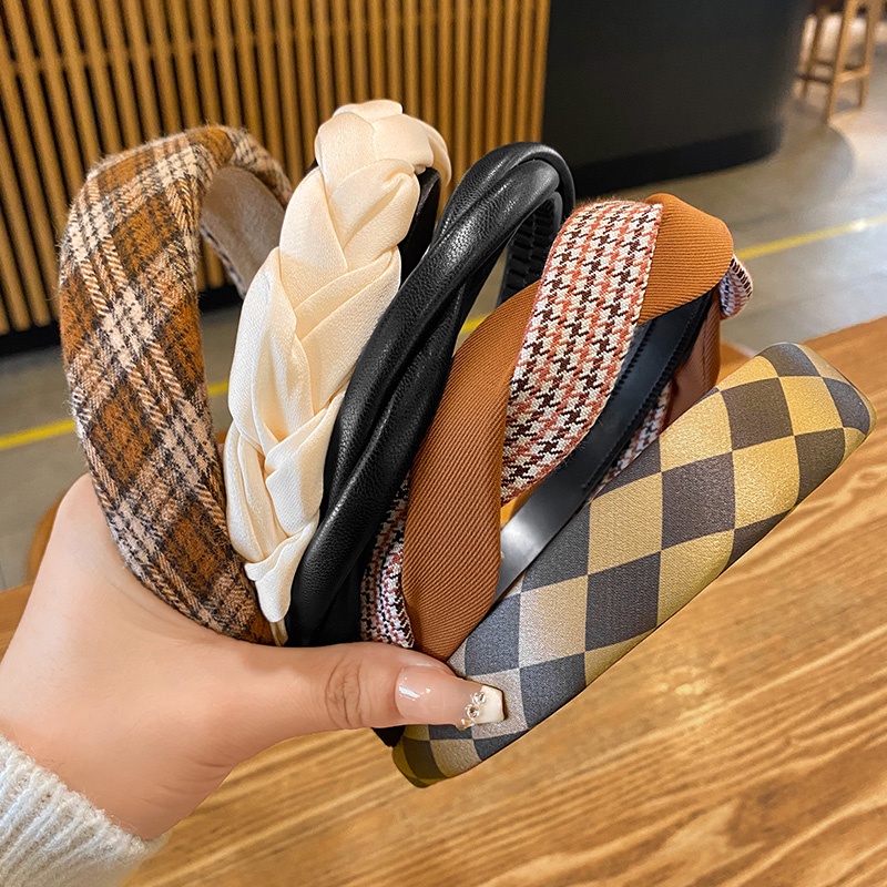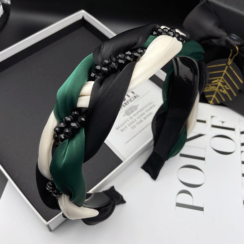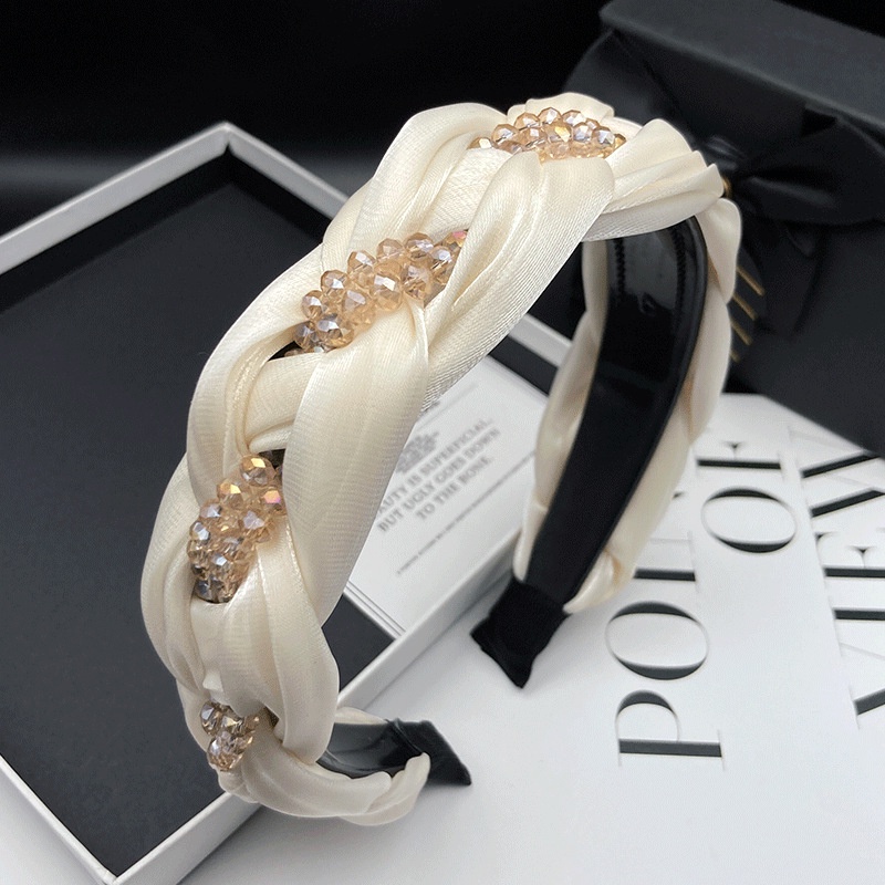 ใหม่ ตาข่าย ลูกปัด ที่คาดผม บิด ถัก ที่คาดผม พร้อมฟัน กันลื่น เครื่องประดับผม