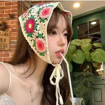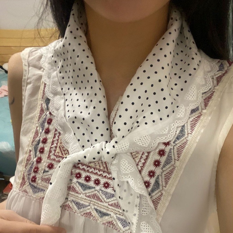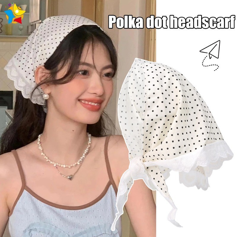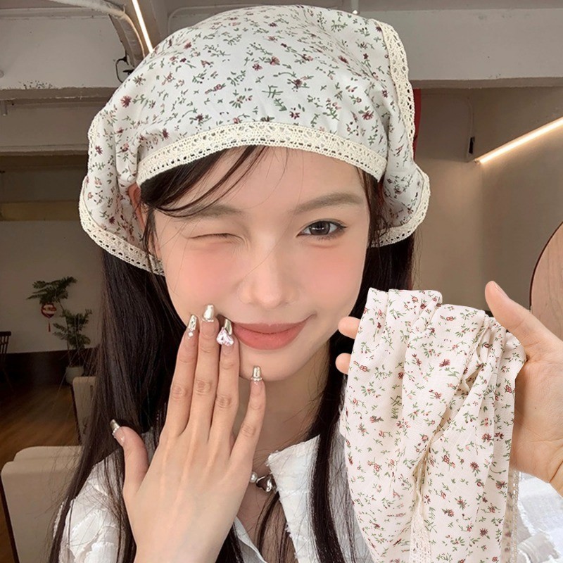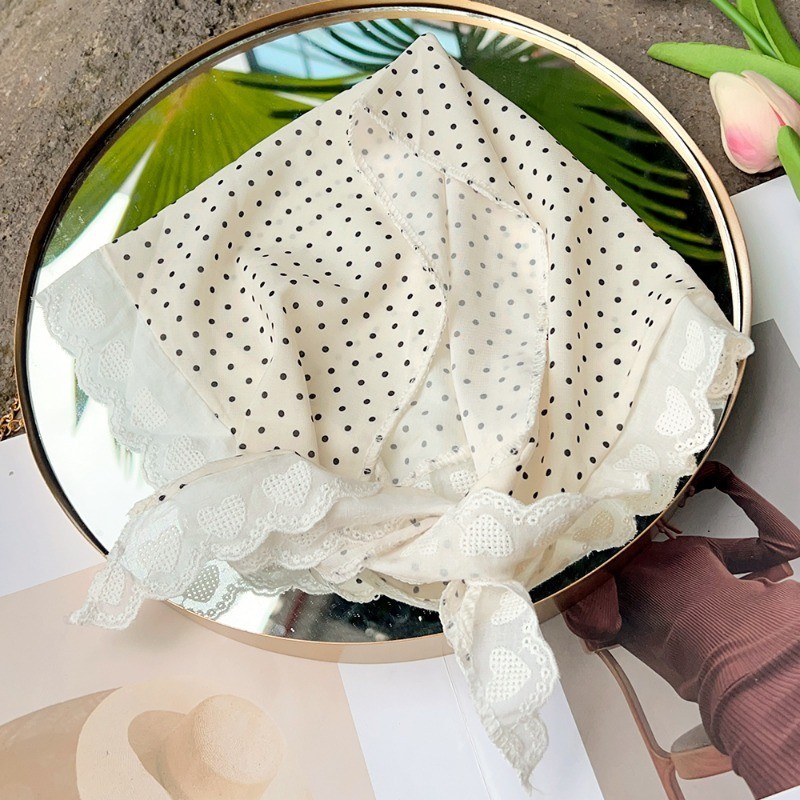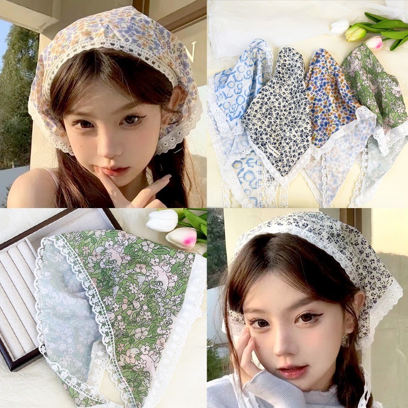 ใหม่ฝรั่งเศสหวานลายจุดดอกไม้ลูกไม้แบบสามเหลี่ยมผ้าพันคอผมสไตล์อภิบาลคาดศีรษะผู้หญิงสาวอเนกประสงค์ริมทะเลวันหยุดผ้าโพกหัวอุปกรณ์ผม