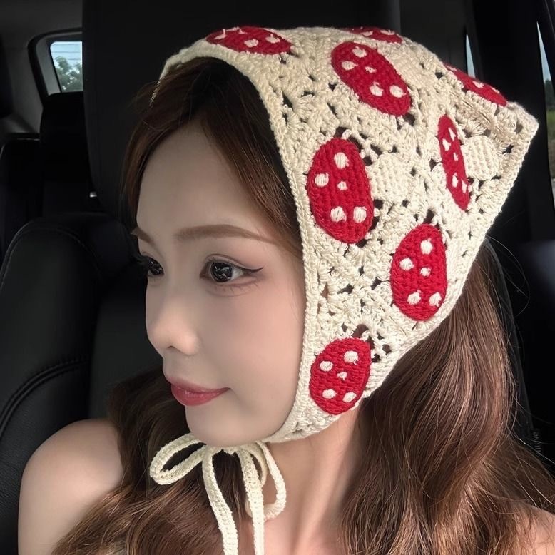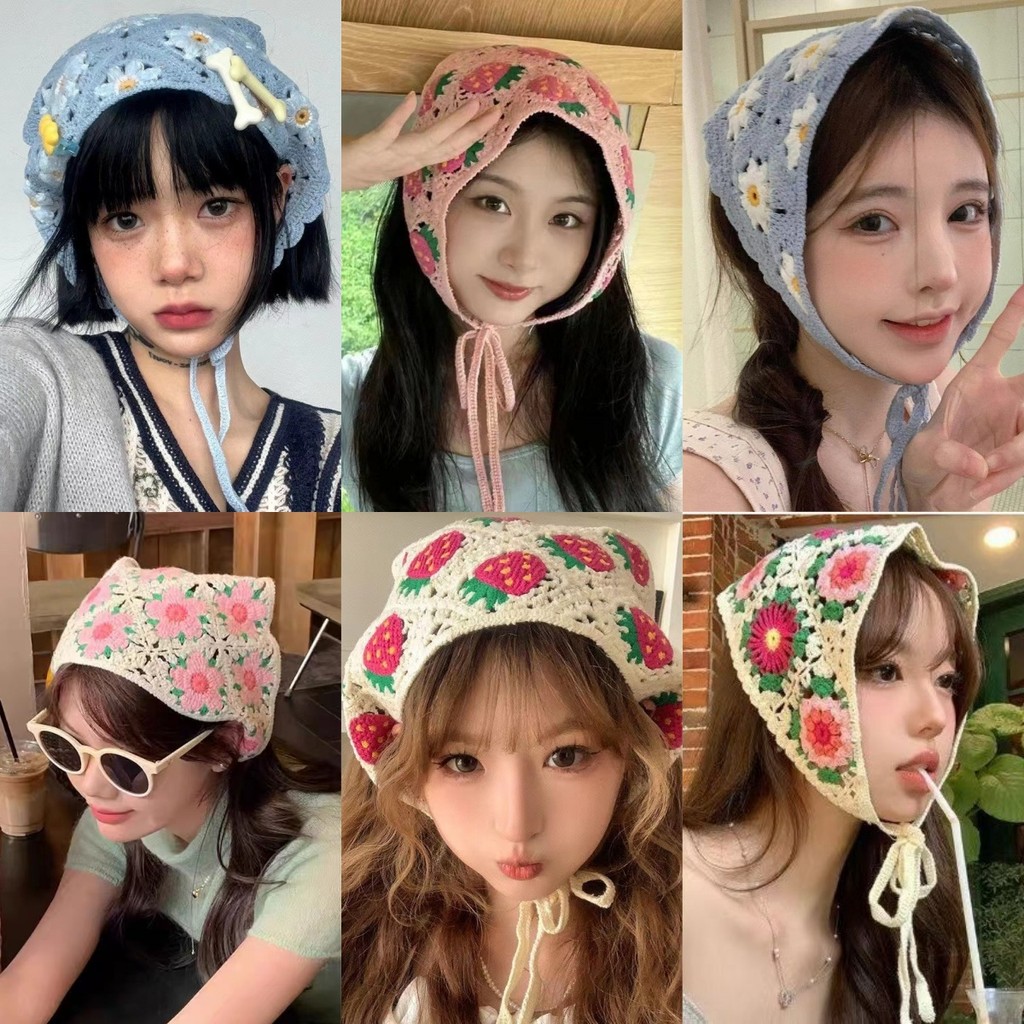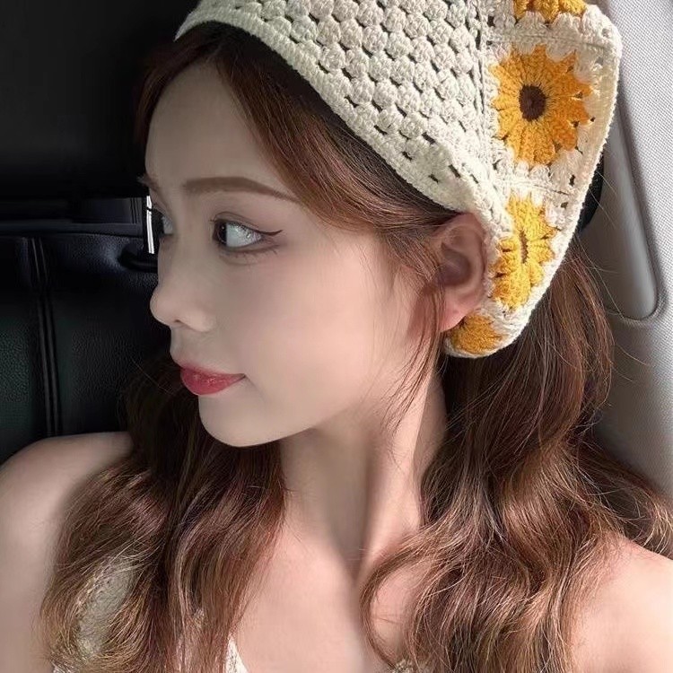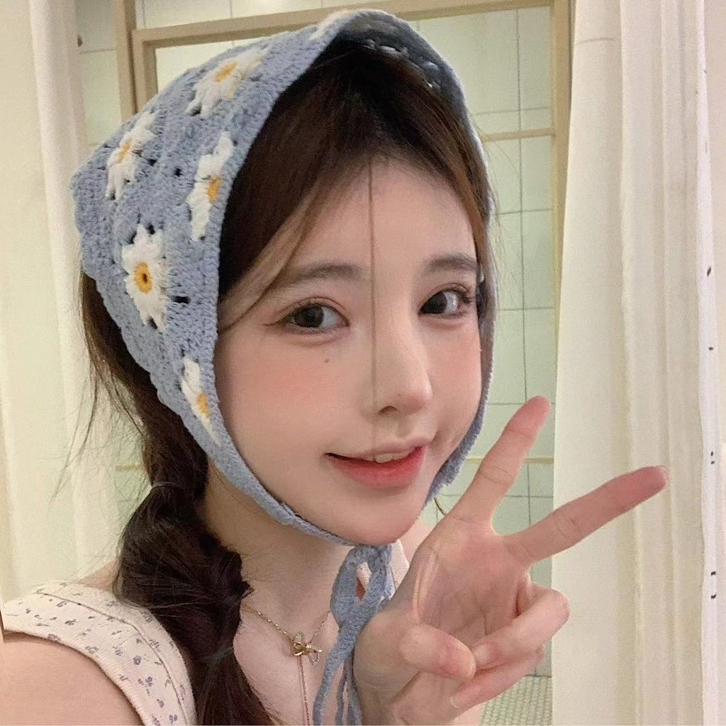 ใหม่ฝรั่งเศสหวานลายจุดดอกไม้ลูกไม้แบบสามเหลี่ยมผ้าพันคอผมสไตล์อภิบาลคาดศีรษะผู้หญิงสาวอเนกประสงค์ริมทะเลวันหยุดผ้าโพกหัวอุปกรณ์ผม