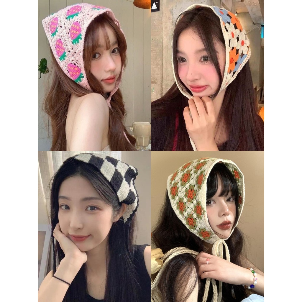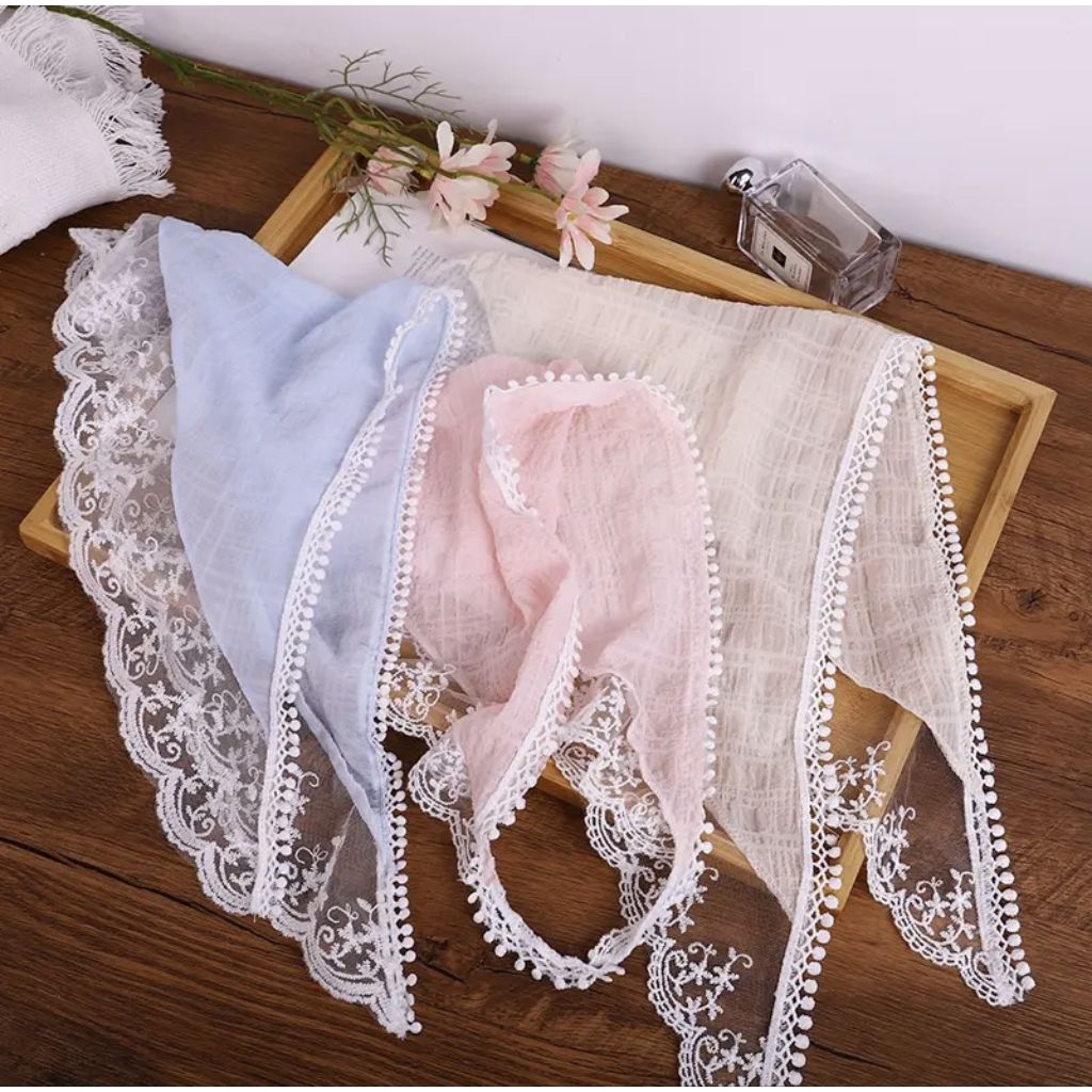 🌈พร้อมส่ง!! ผ้าโพกศรีษะลูกไม้ ทรงสามเหลี่ยม