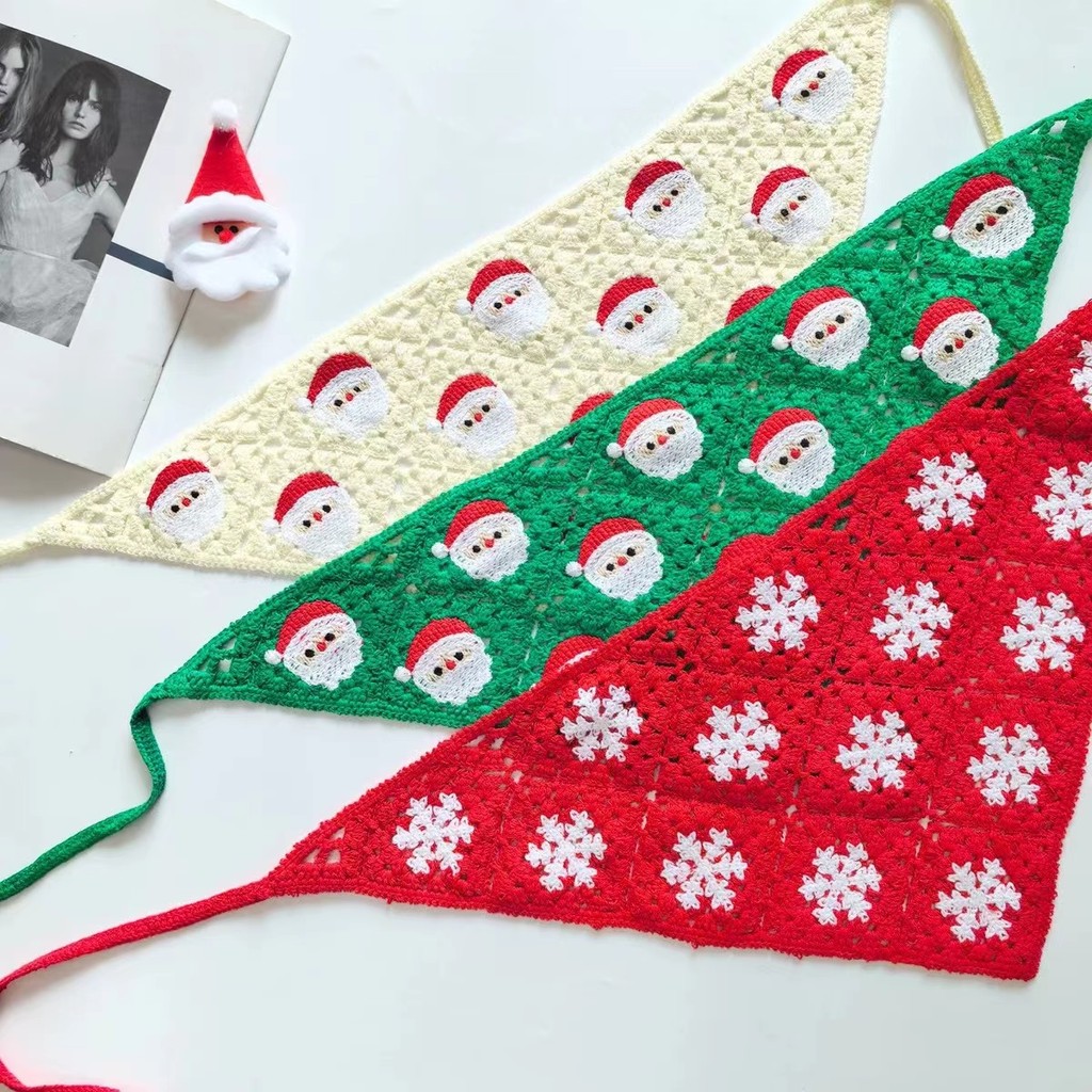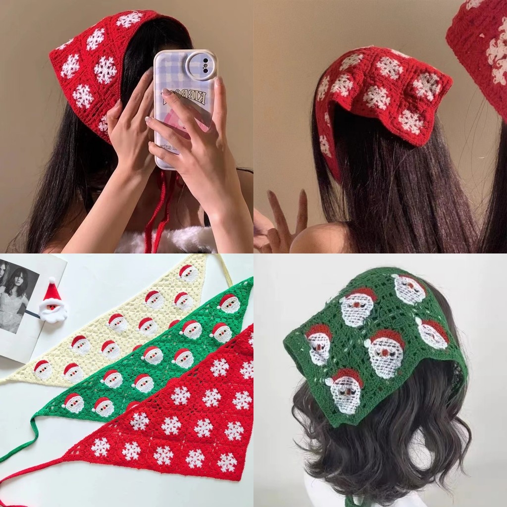 💜Bonnie💜ที่คาดผมผ้าพันคอ ผ้าโพกหัว โครเชต์ถัก ที่คาดผม ลายคริสต์มาสสีแดงเขียวน่ารักมาก หวาน คาวาอี้คาวาใจ