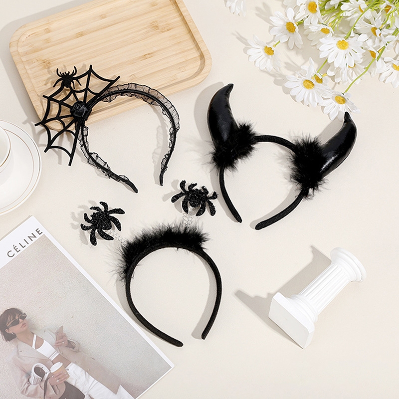 Adth ฮาโลวีนปีศาจผม Band ตกแต่งปาร์ตี้ฮาโลวีน Spider Web แม่มดเต้นรํา Photo Props เทศกาลผีค้างคาวหัว Hoop Martijn