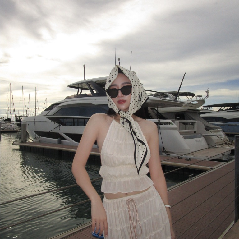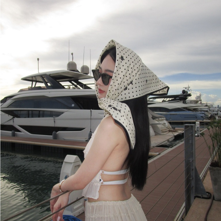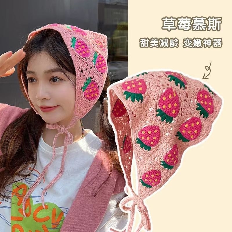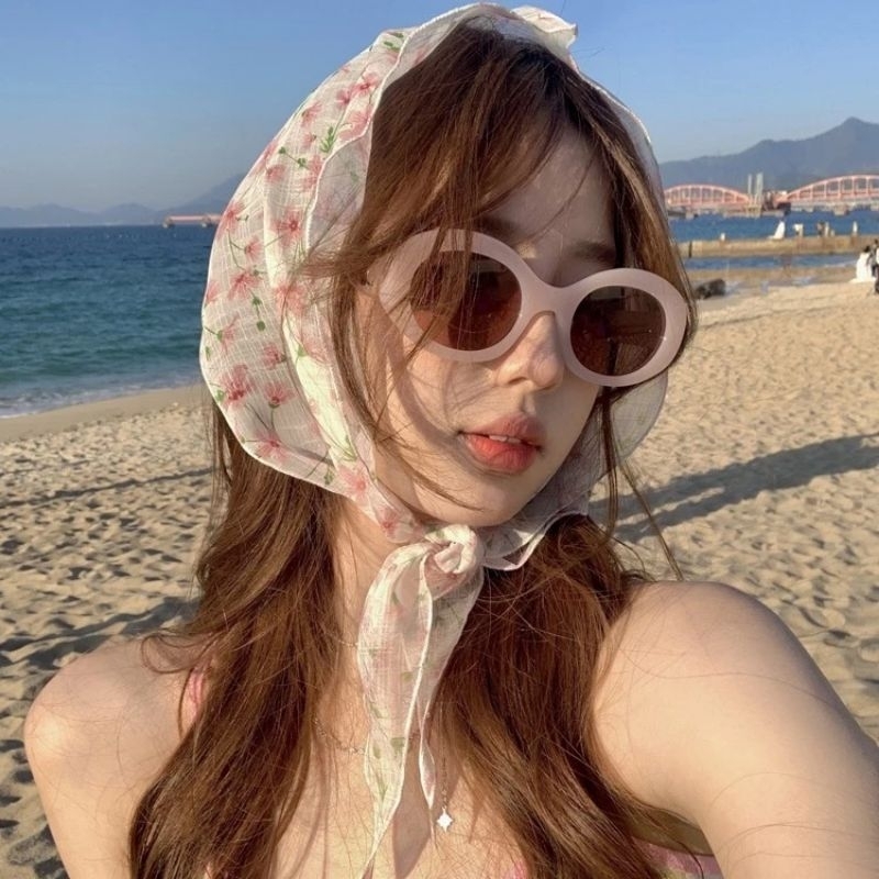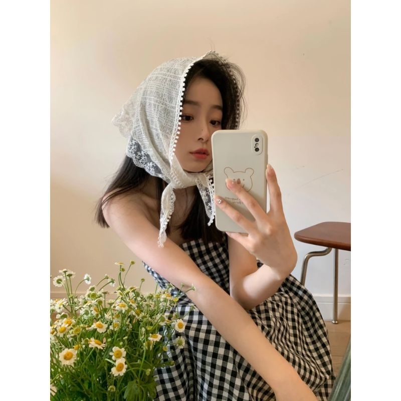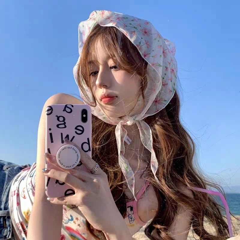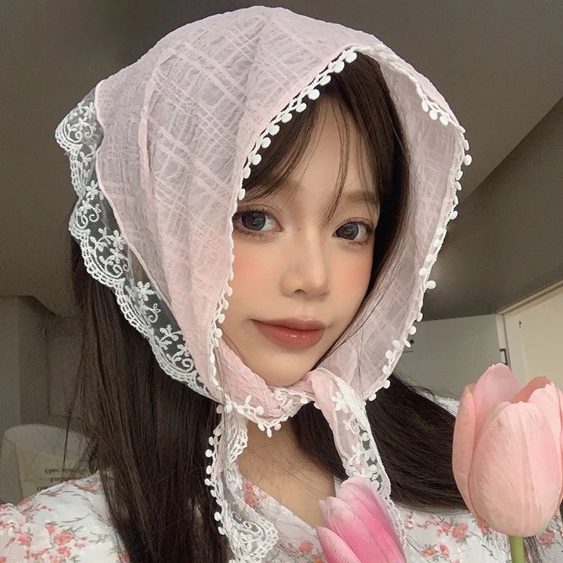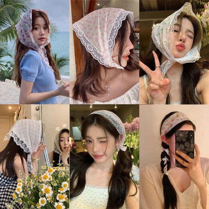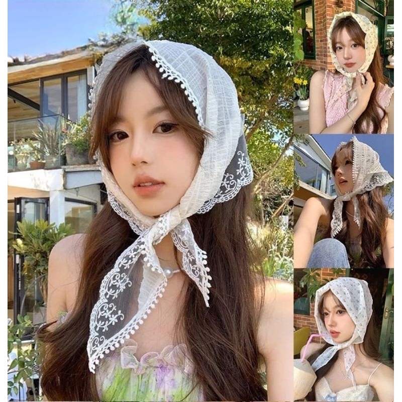 A1/0ผ้าโพกผมลายดอกไม้ ลูกไม้ ผ้าสามเหลี่ยม ผ้าพันคอ พร้อมส่งในไทย ส่งไวจ้า