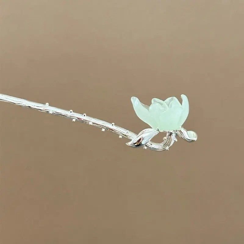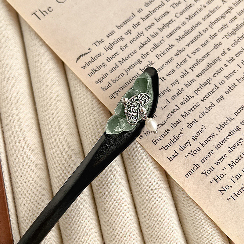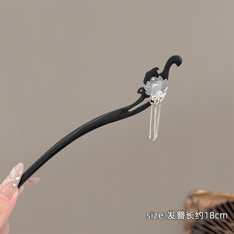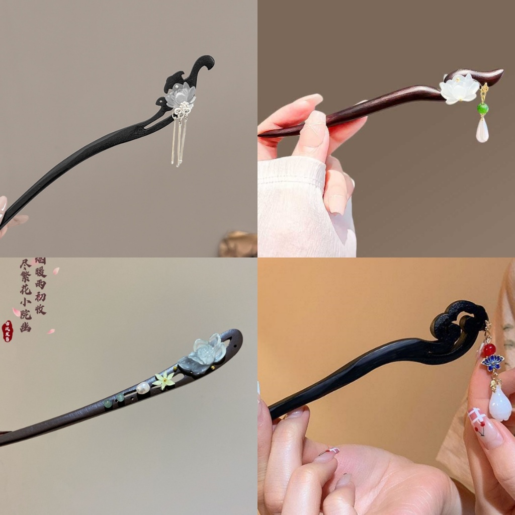 กิ๊บติดผมสไตล์ย้อนยุคแบบชาติพันธุ์ ทำจากไม้จันทน์หรูหรา ประดับด้วยดอกบัวสด